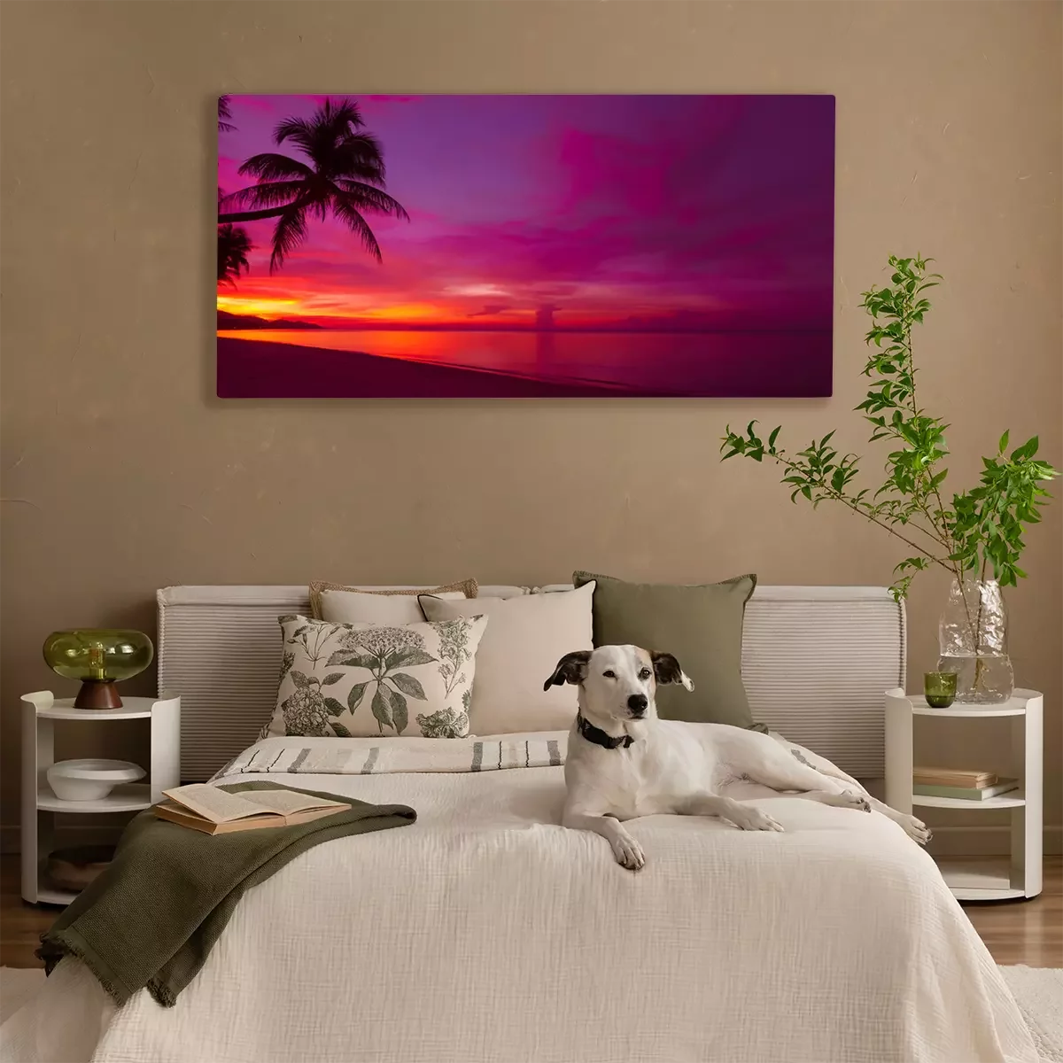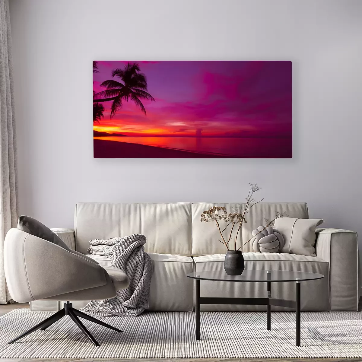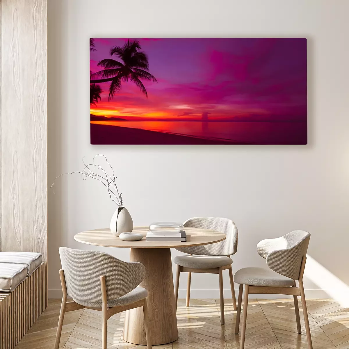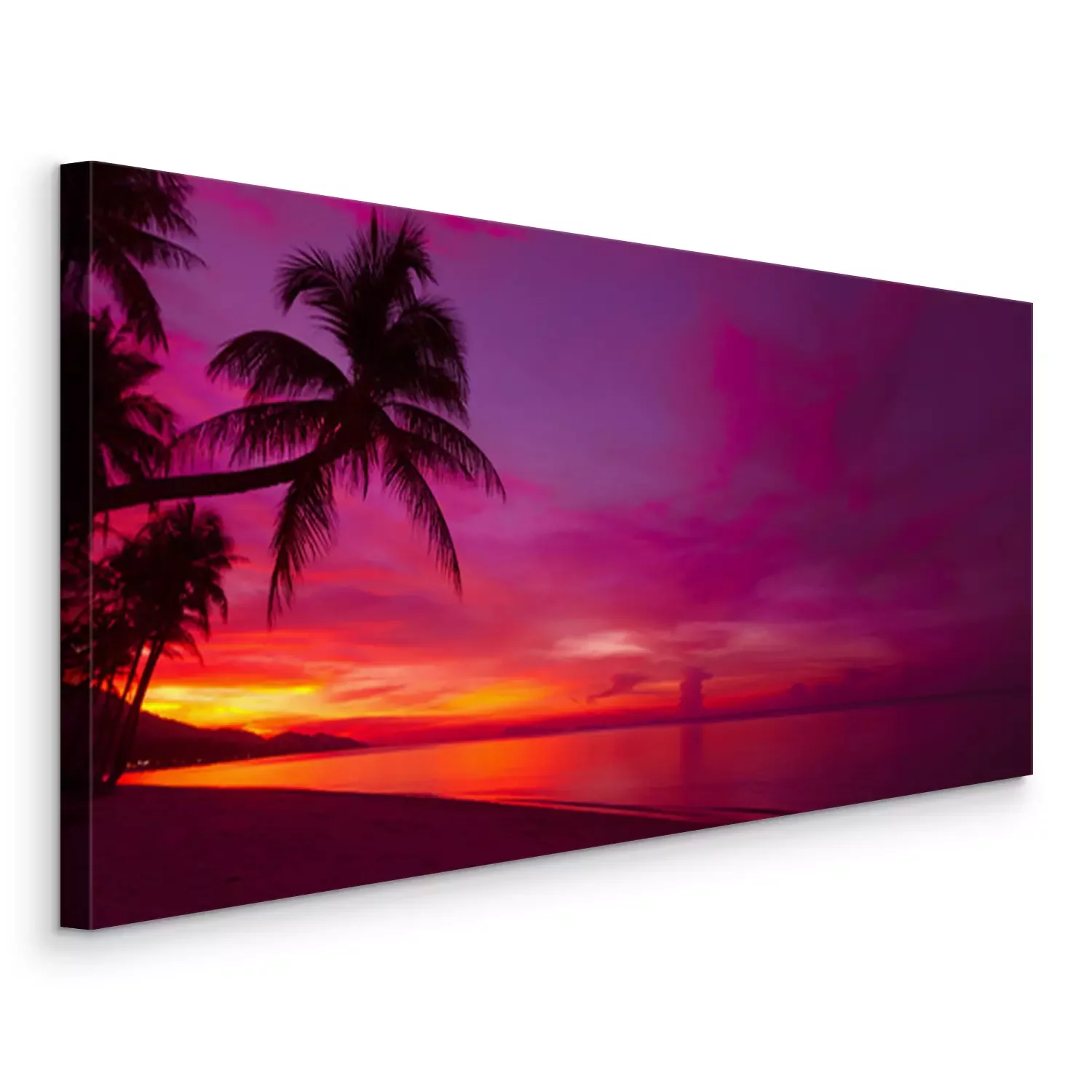 Canvas: Tropische zonsondergang met palmboom silhouet panorama