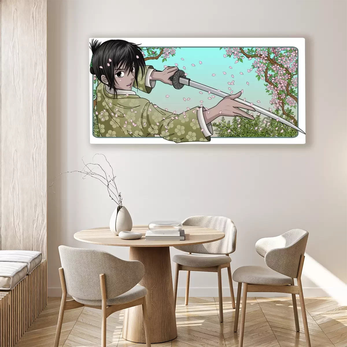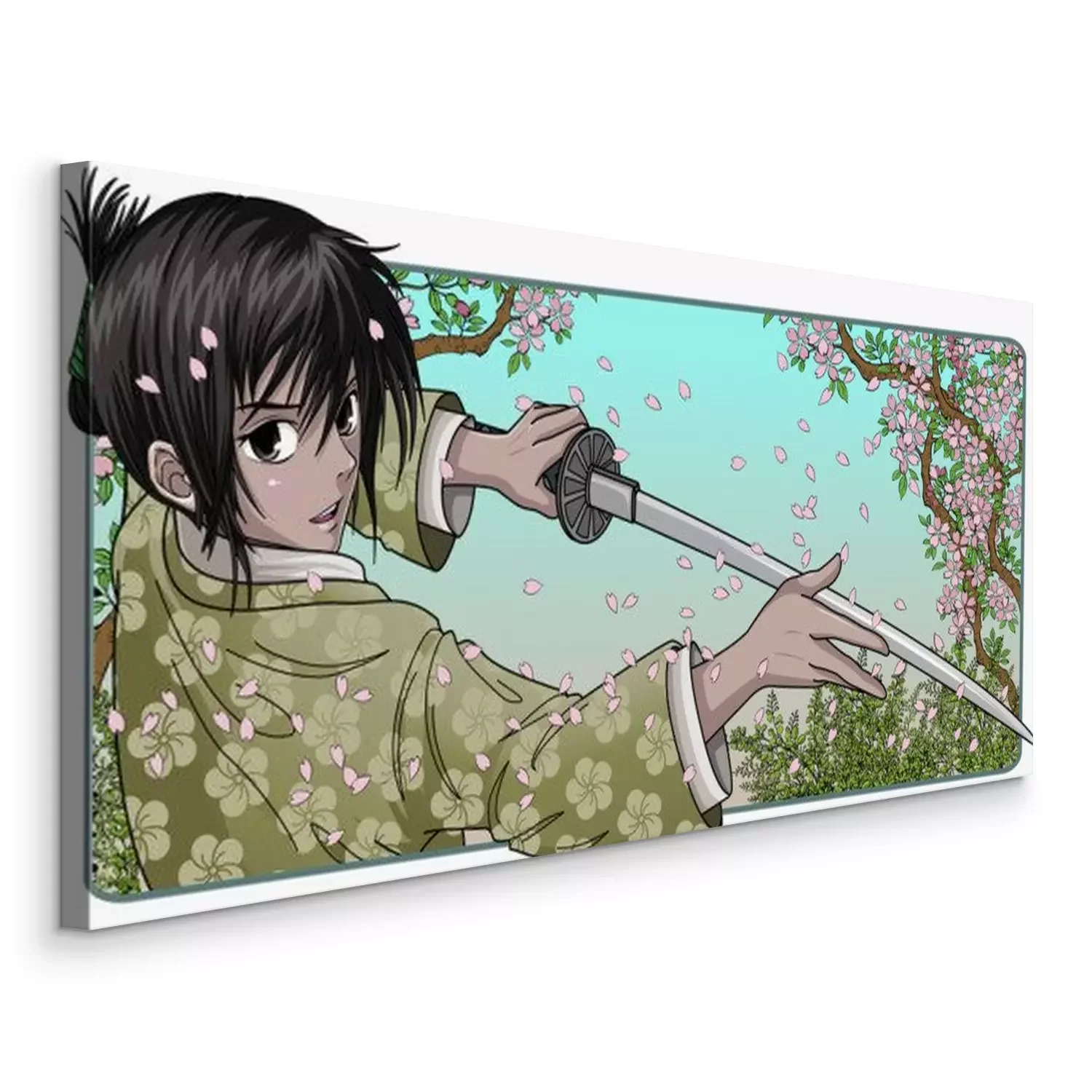 Canvas Trots Samurai Holding Blade - Natuur Achtergrond