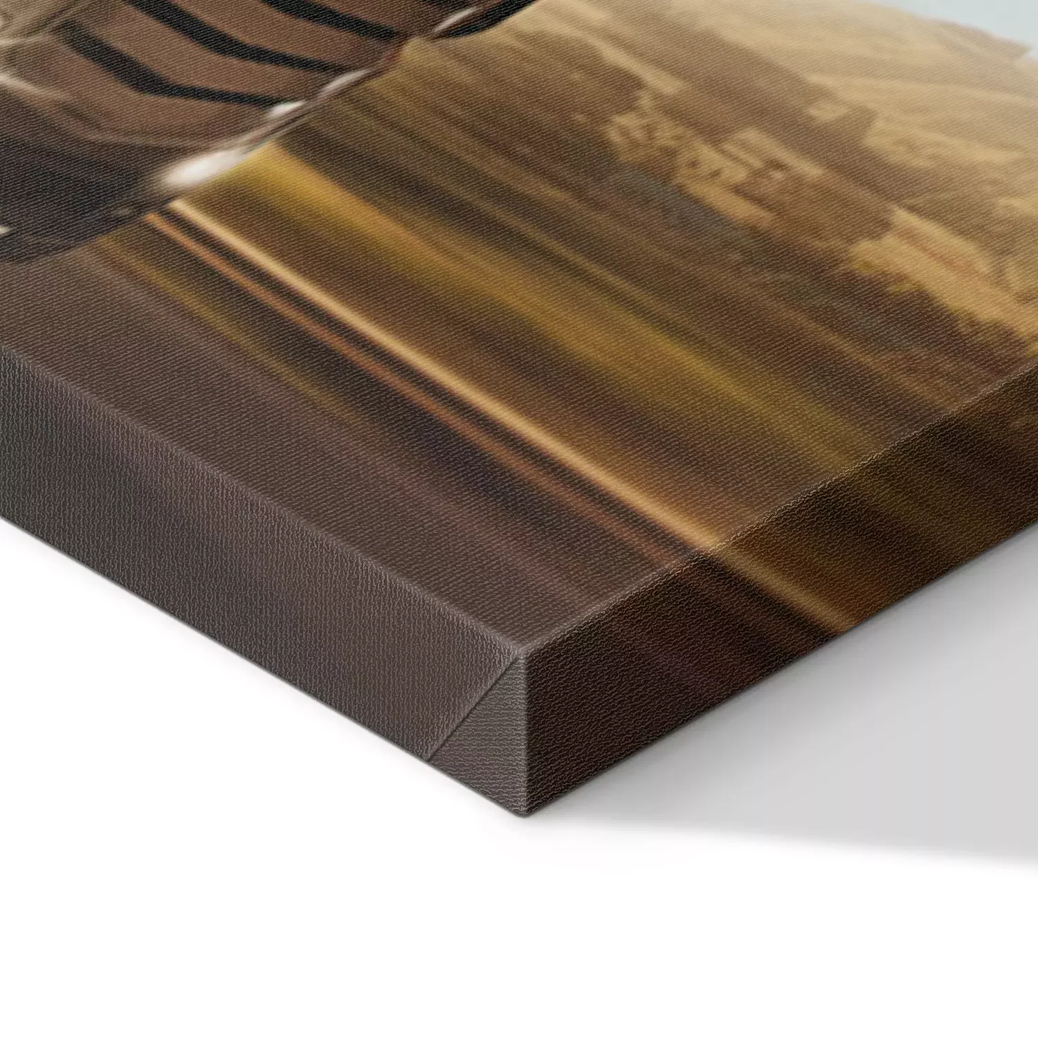 De print wordt aangebracht op hoogwaardig canvas dat op een schildersweefgetouw (spieraam) wordt gespannen. Omdat de print de zijranden bedekt, hoeft het ontwerp niet met een extra kader te worden omlijst. Wij raden ook composities aan die uit meerdere foto's bestaan en zo een coherente compositie vormen.