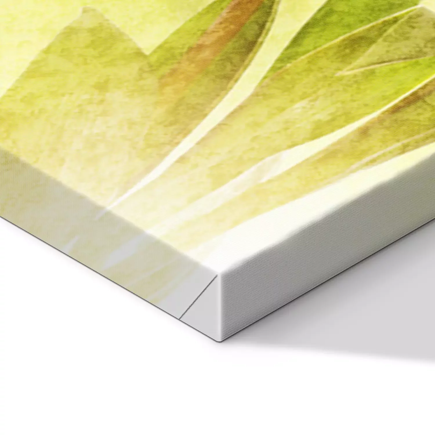 De print wordt aangebracht op hoogwaardig canvas dat op een schildersweefgetouw (spieraam) wordt gespannen. Omdat de print de zijranden bedekt, hoeft het ontwerp niet met een extra kader te worden omlijst. Wij raden ook composities aan die uit meerdere foto's bestaan en zo een coherente compositie vormen.