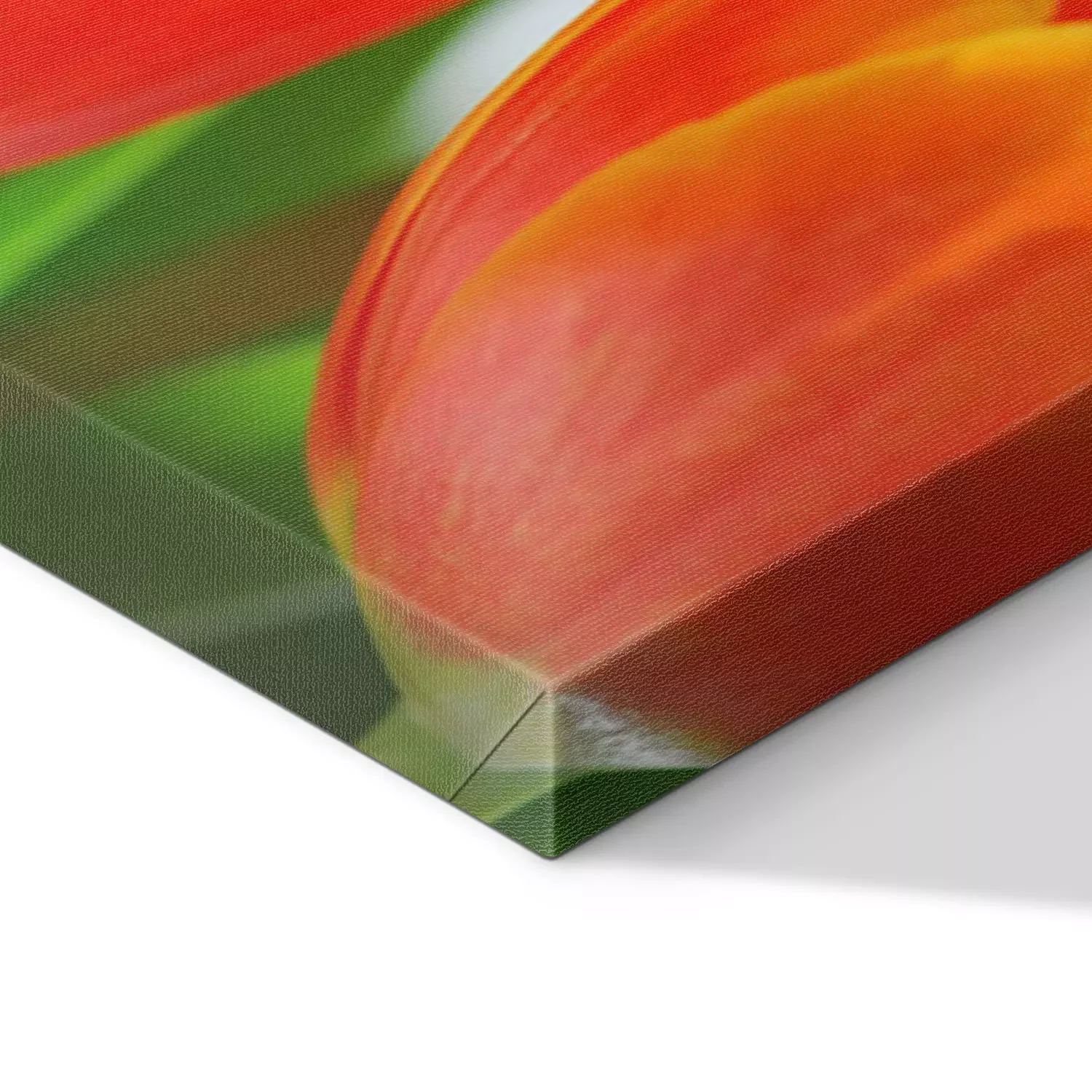 De print wordt aangebracht op hoogwaardig canvas dat op een schildersweefgetouw (spieraam) wordt gespannen. Omdat de print de zijranden bedekt, hoeft het ontwerp niet met een extra kader te worden omlijst. Wij raden ook composities aan die uit meerdere foto's bestaan en zo een coherente compositie vormen.
