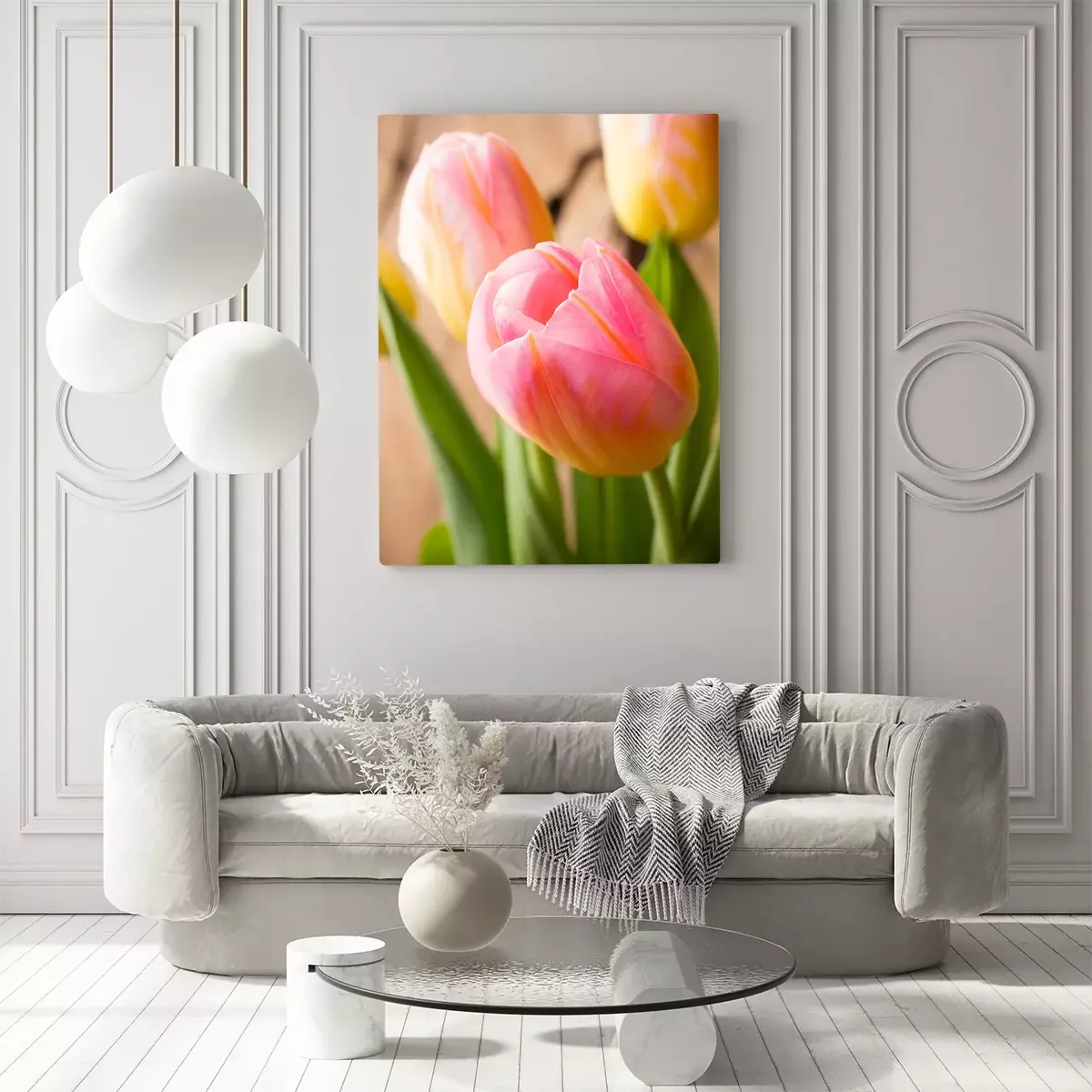 De print wordt aangebracht op hoogwaardig canvas dat op een schildersweefgetouw (spieraam) wordt gespannen. Omdat de print de zijranden bedekt, hoeft het ontwerp niet met een extra kader te worden omlijst. Wij raden ook composities aan die uit meerdere foto's bestaan en zo een coherente compositie vormen.