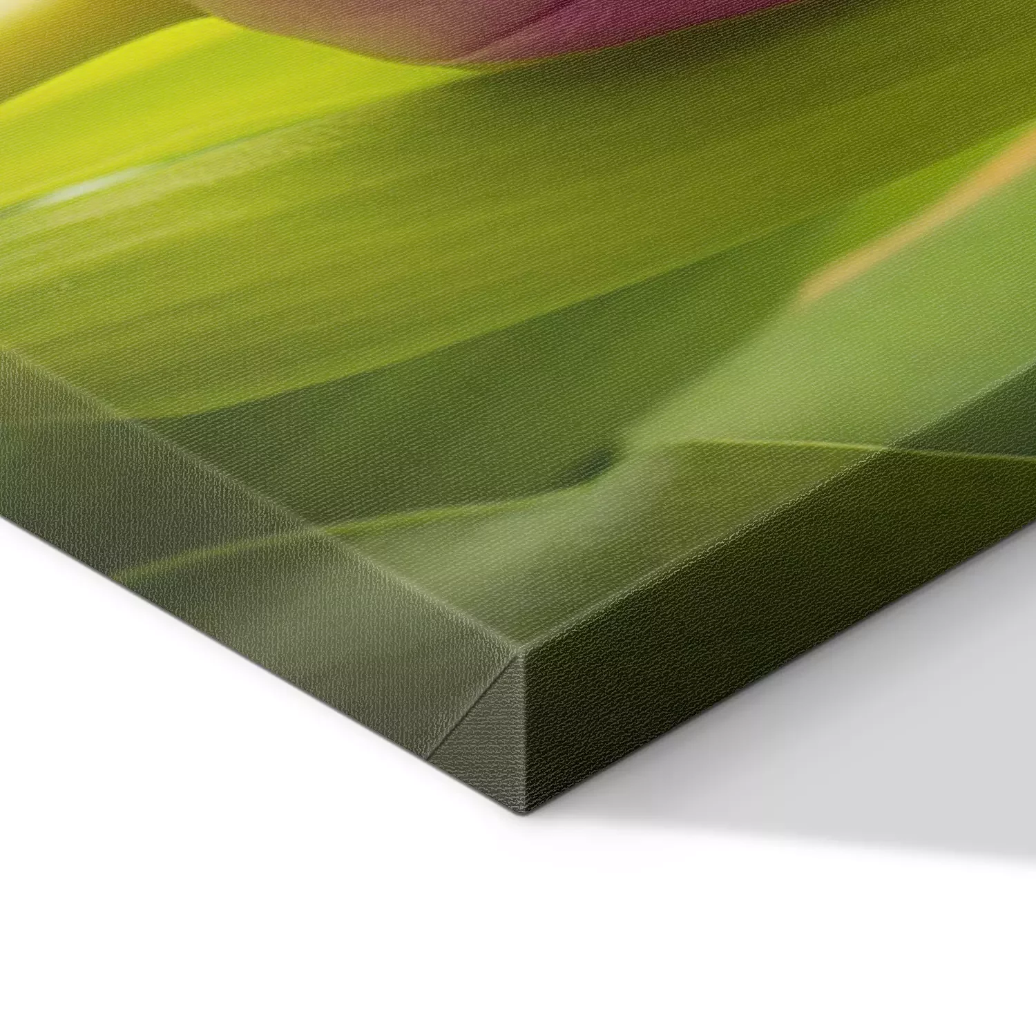 De print wordt aangebracht op hoogwaardig canvas dat op een schildersweefgetouw (spieraam) wordt gespannen. Omdat de print de zijranden bedekt, hoeft het ontwerp niet met een extra kader te worden omlijst. Wij raden ook composities aan die uit meerdere foto's bestaan en zo een coherente compositie vormen.