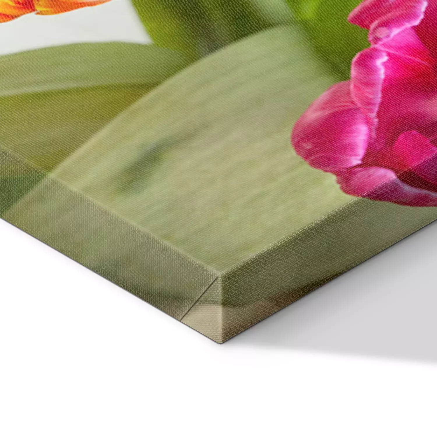 De print wordt aangebracht op hoogwaardig canvas dat op een schildersweefgetouw (spieraam) wordt gespannen. Omdat de print de zijranden bedekt, hoeft het ontwerp niet met een extra kader te worden omlijst. Wij raden ook composities aan die uit meerdere foto's bestaan en zo een coherente compositie vormen.