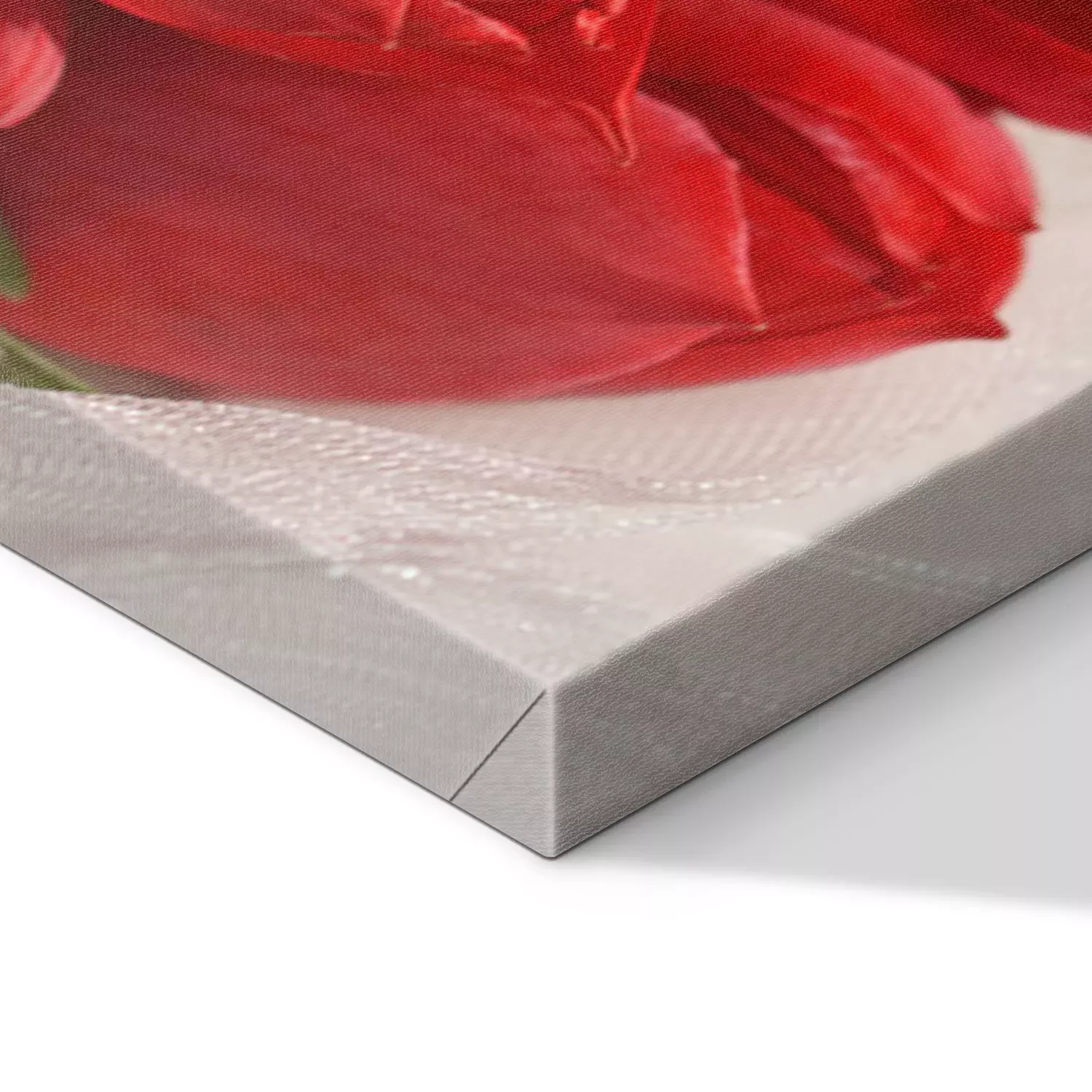 De print wordt aangebracht op hoogwaardig canvas dat op een schildersweefgetouw (spieraam) wordt gespannen. Omdat de print de zijranden bedekt, hoeft het ontwerp niet met een extra kader te worden omlijst. Wij raden ook composities aan die uit meerdere foto's bestaan en zo een coherente compositie vormen.