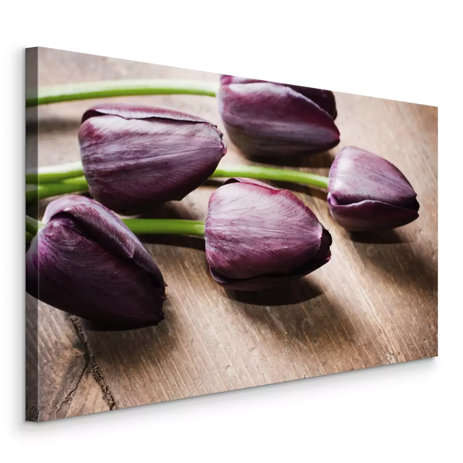 Canvas: tulpen op houten achtergrond