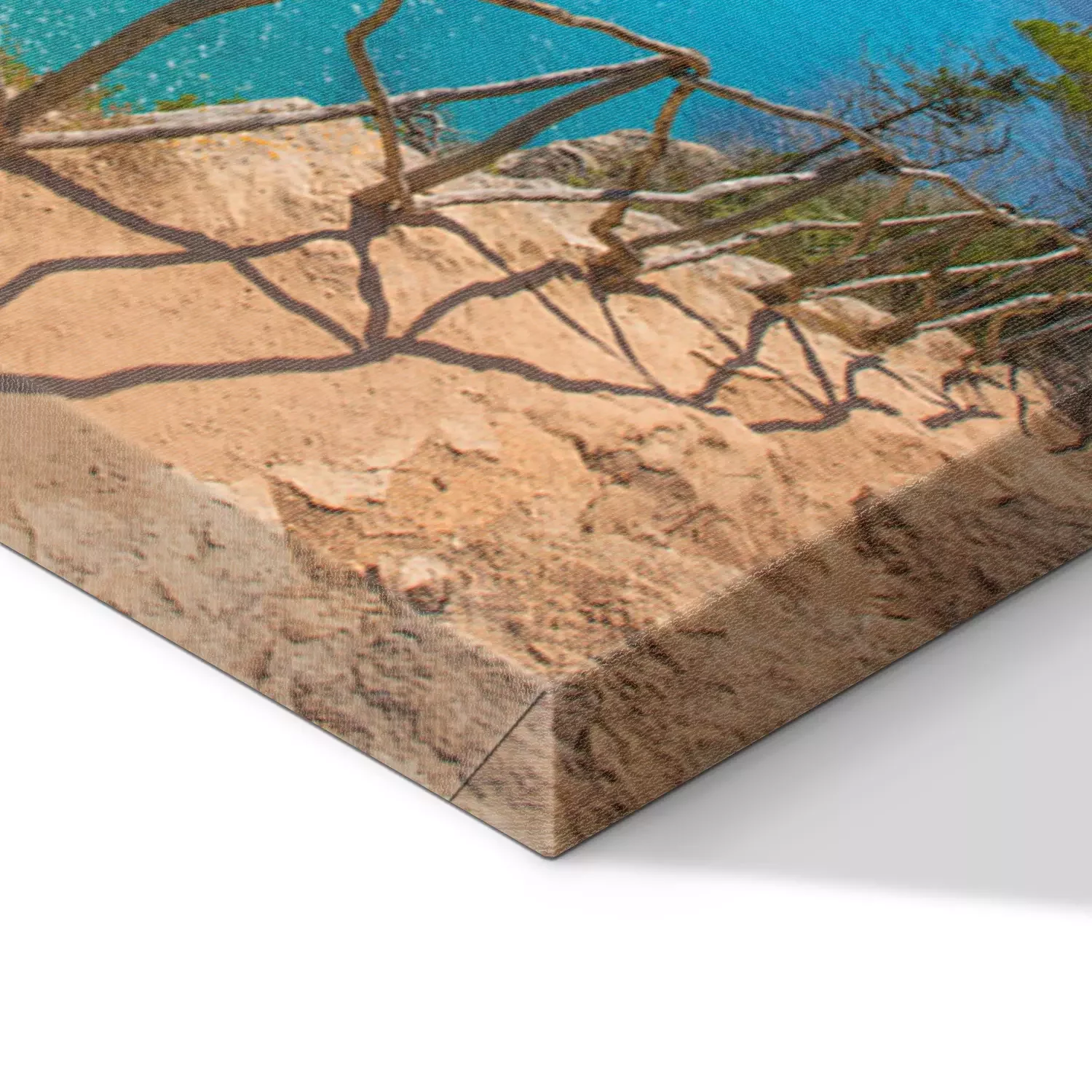 De print wordt aangebracht op hoogwaardig canvas dat op een schildersweefgetouw (spieraam) wordt gespannen. Omdat de print de zijranden bedekt, hoeft het ontwerp niet met een extra kader te worden omlijst. Wij raden ook composities aan die uit meerdere foto's bestaan en zo een coherente compositie vormen.