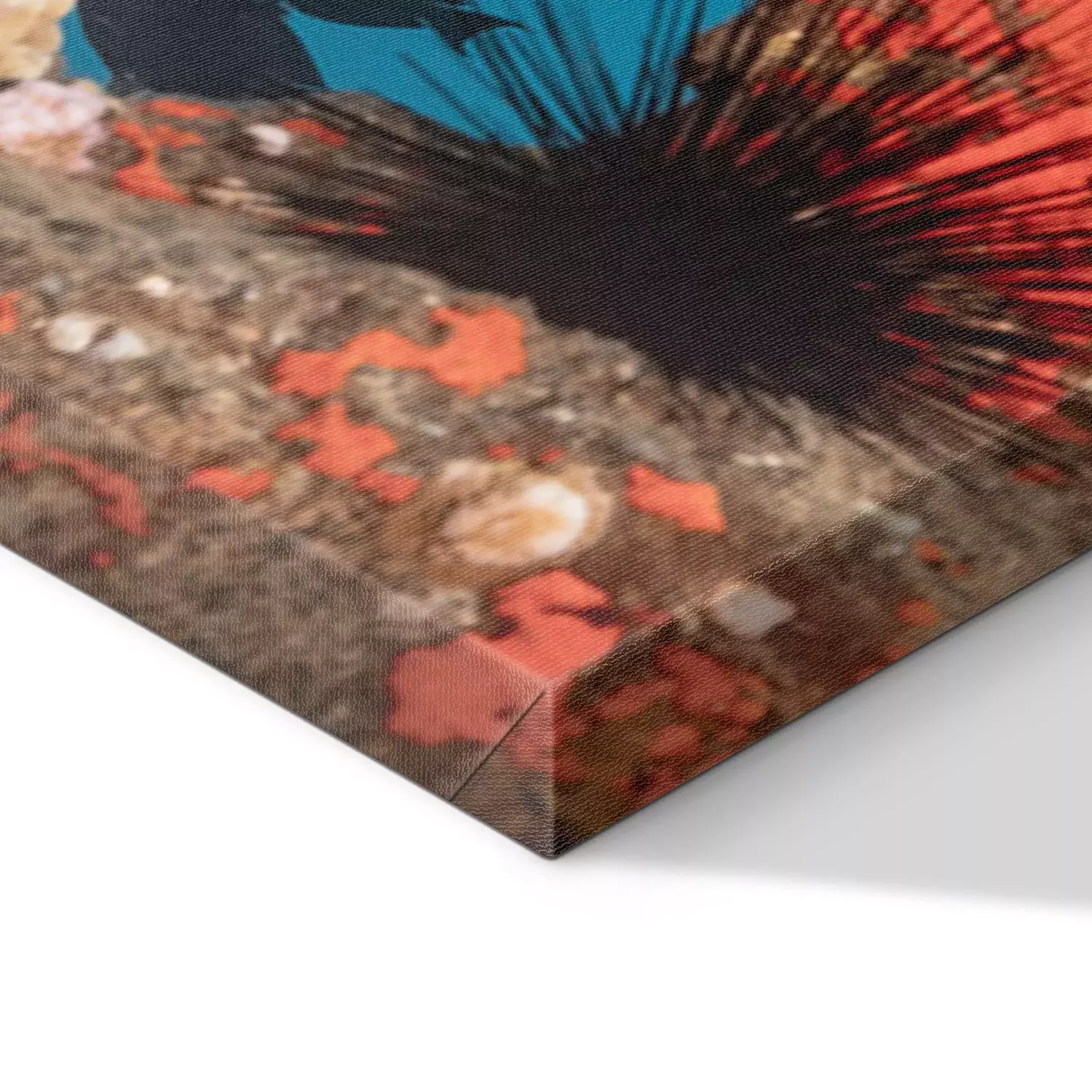 De print wordt aangebracht op hoogwaardig canvas dat op een schildersweefgetouw (spieraam) wordt gespannen. Omdat de print de zijranden bedekt, hoeft het ontwerp niet met een extra kader te worden omlijst. Wij raden ook composities aan die uit meerdere foto's bestaan en zo een coherente compositie vormen.