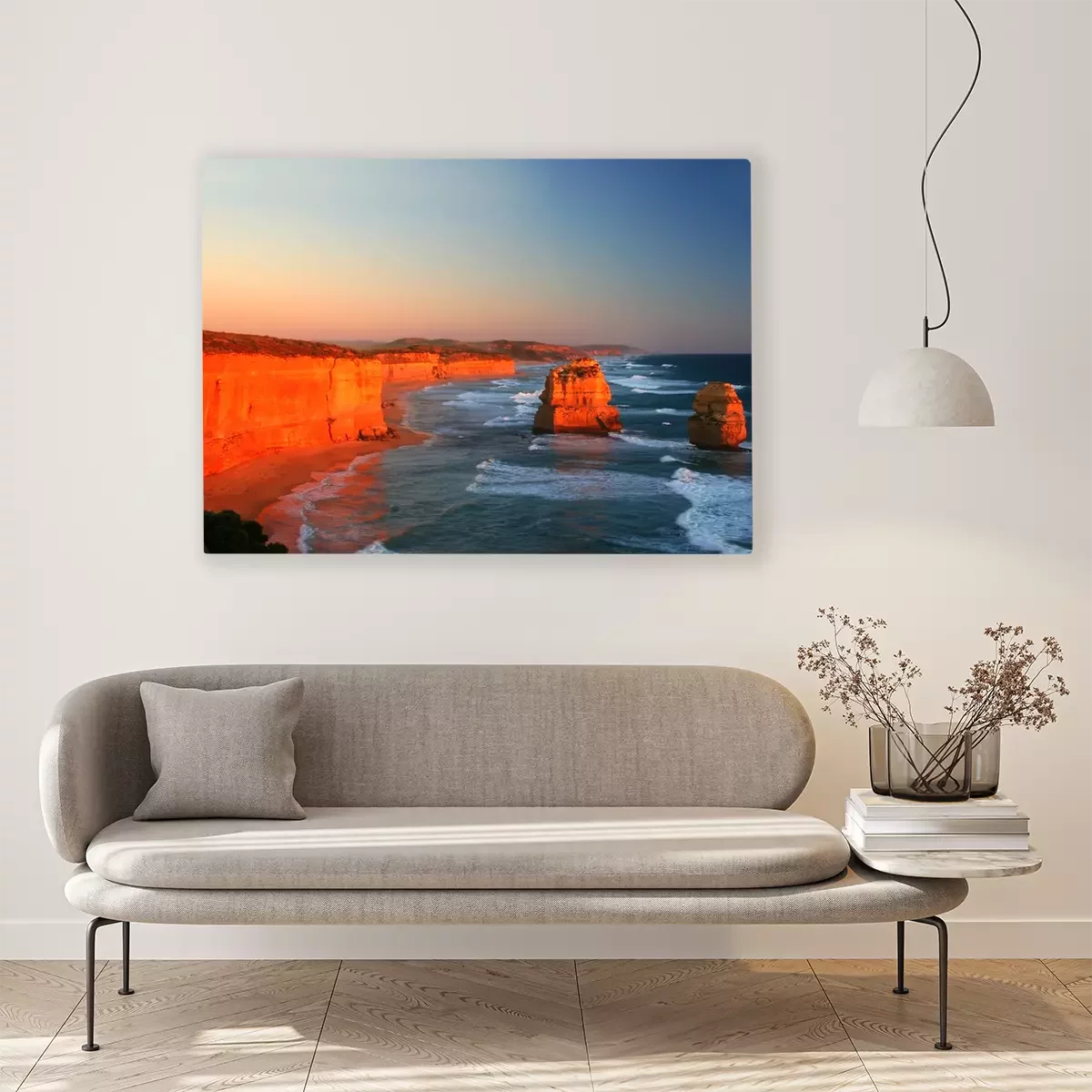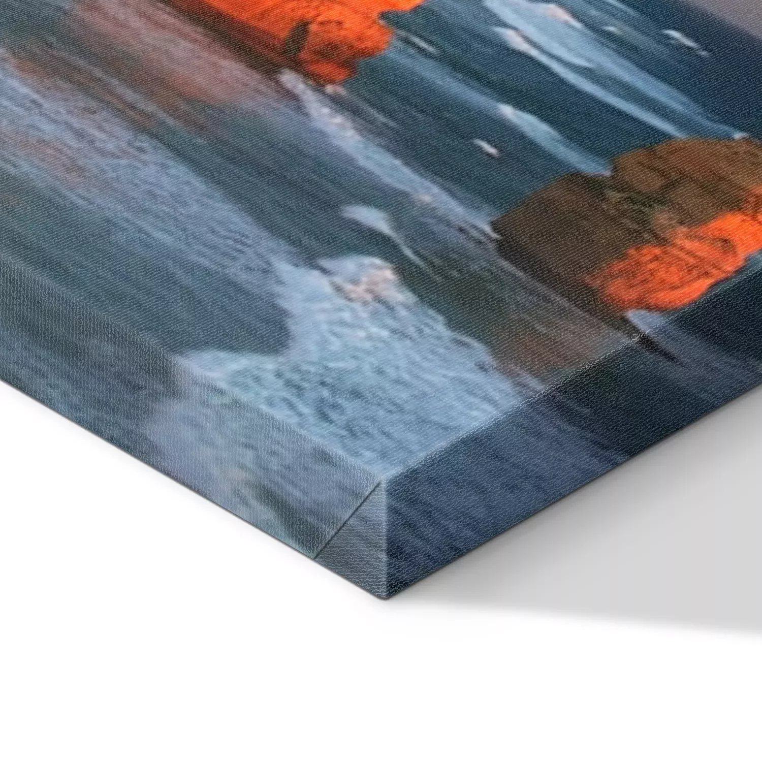 De print wordt aangebracht op hoogwaardig canvas dat op een schildersweefgetouw (spieraam) wordt gespannen. Omdat de print de zijranden bedekt, hoeft het ontwerp niet met een extra kader te worden omlijst. Wij raden ook composities aan die uit meerdere foto's bestaan en zo een coherente compositie vormen.
