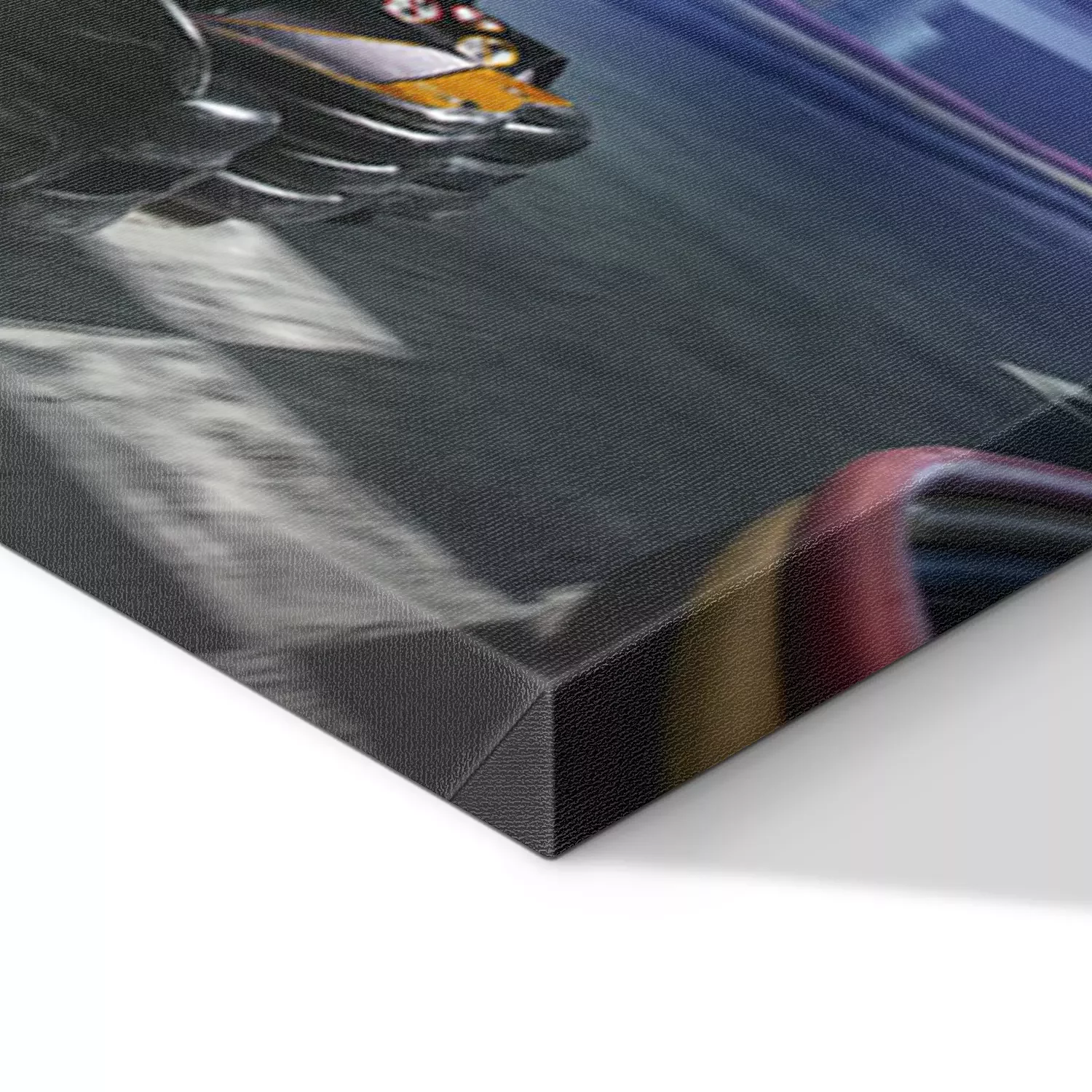 De print wordt aangebracht op hoogwaardig canvas dat op een schildersweefgetouw (spieraam) wordt gespannen. Omdat de print de zijranden bedekt, hoeft het ontwerp niet met een extra kader te worden omlijst. Wij raden ook composities aan die uit meerdere foto's bestaan en zo een coherente compositie vormen.
