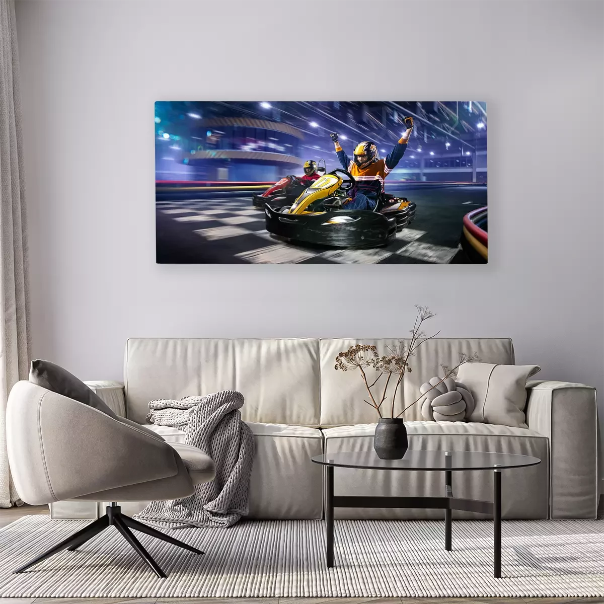 Canvas Twee cart racers racen op de grote baan