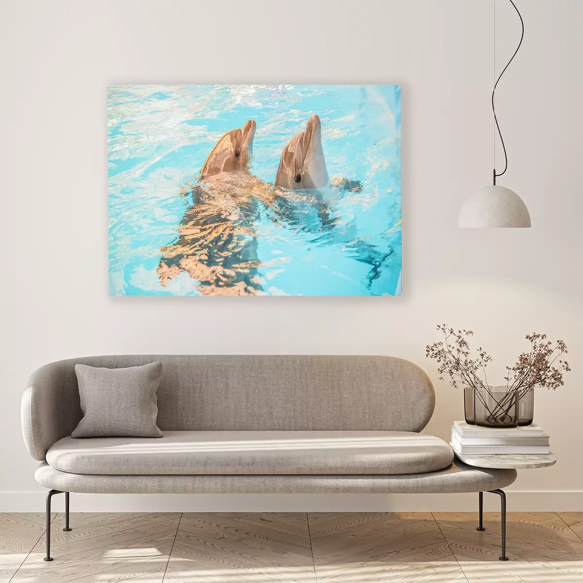 Canvas: Twee dolfijnen in het bekken van oceanarium