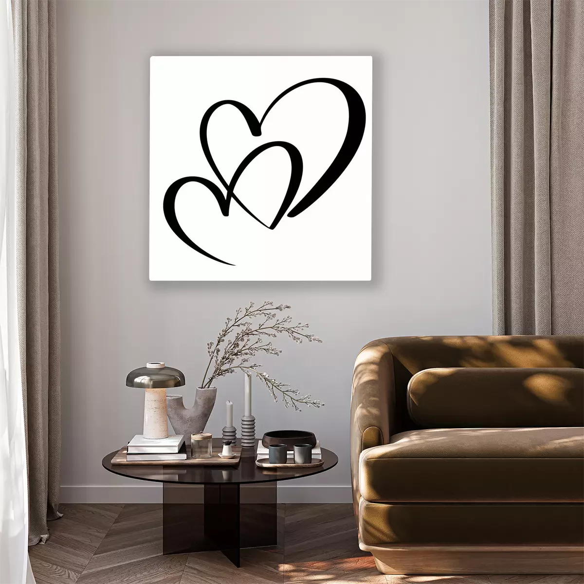 Canvas: Twee geliefden hart. Handgemaakte vector kalligrafie. Decor voor wenskaart, mok, foto overlays, t-shirt print, flyer, posterontwerp