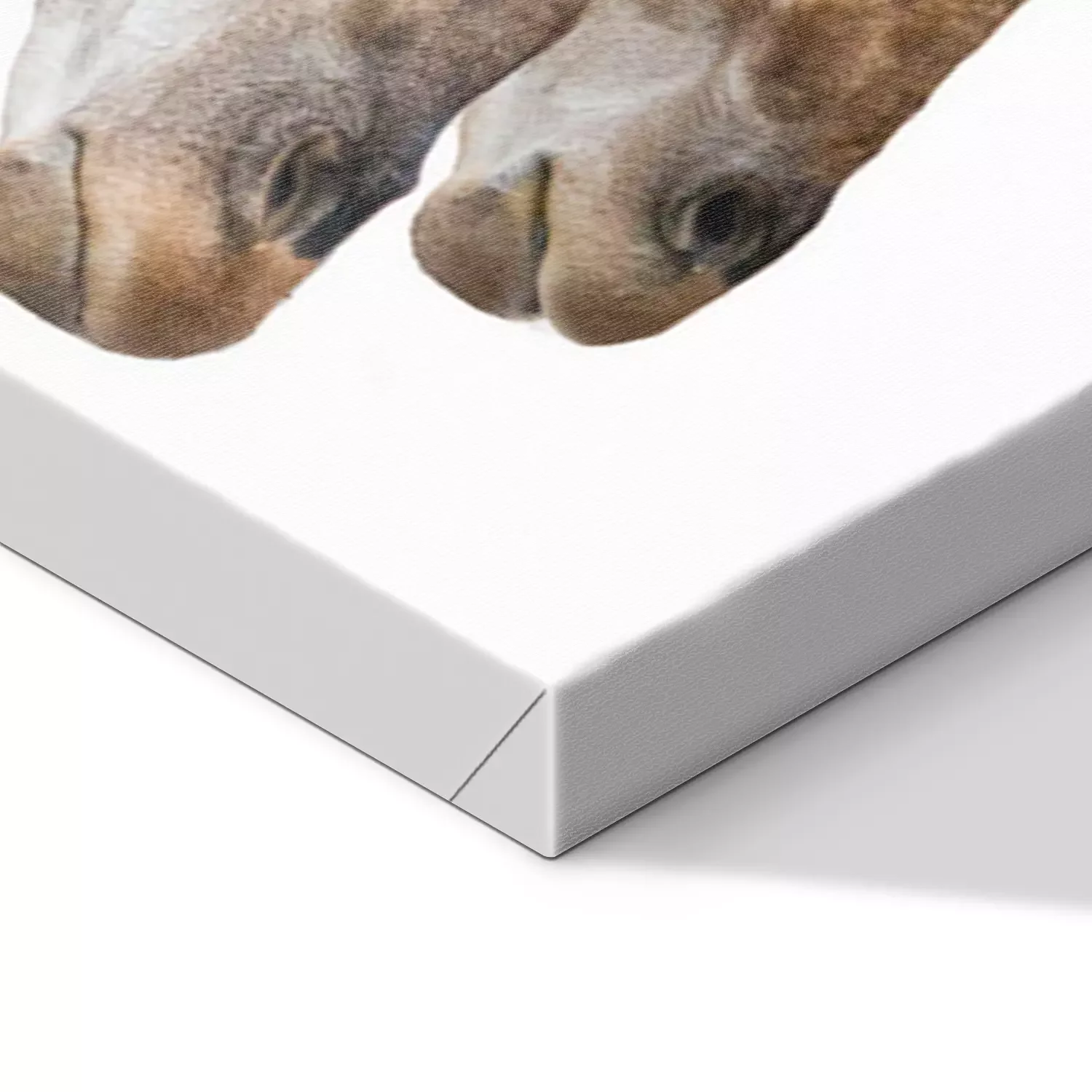 De print wordt aangebracht op hoogwaardig canvas dat op een schildersweefgetouw (spieraam) wordt gespannen. Omdat de print de zijranden bedekt, hoeft het ontwerp niet met een extra kader te worden omlijst. Wij raden ook composities aan die uit meerdere foto's bestaan en zo een coherente compositie vormen.