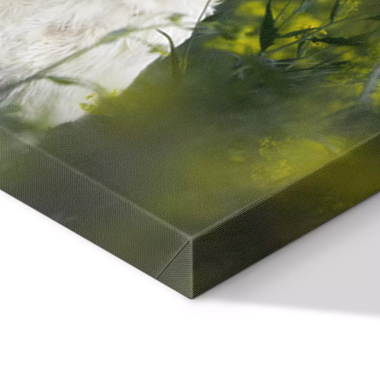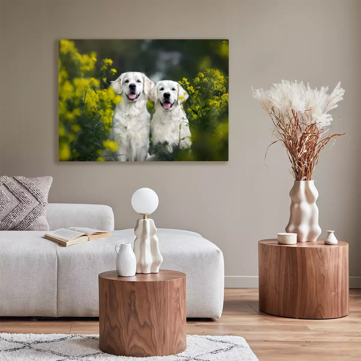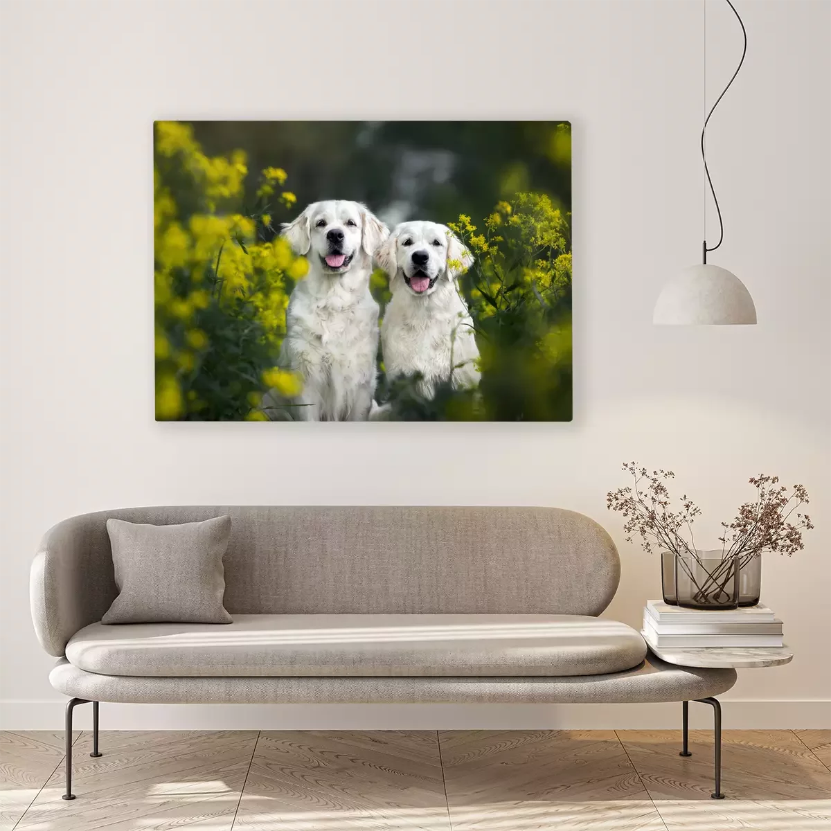 De print wordt aangebracht op hoogwaardig canvas dat op een schildersweefgetouw (spieraam) wordt gespannen. Omdat de print de zijranden bedekt, hoeft het ontwerp niet met een extra kader te worden omlijst. Wij raden ook composities aan die uit meerdere foto's bestaan en zo een coherente compositie vormen.