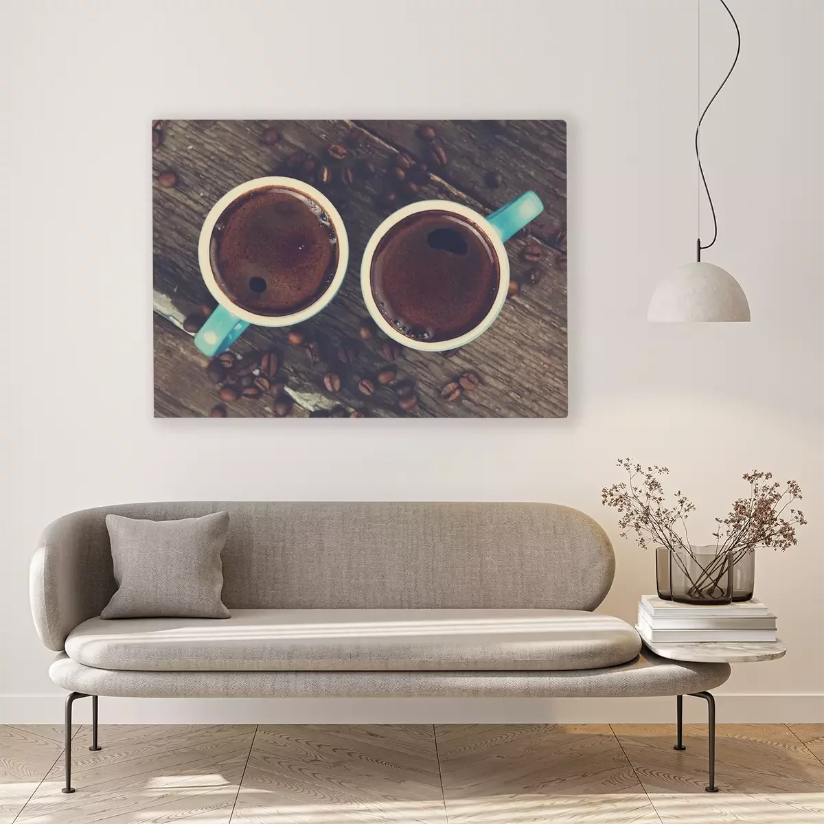 De print wordt aangebracht op hoogwaardig canvas dat op een schildersweefgetouw (spieraam) wordt gespannen. Omdat de print de zijranden bedekt, hoeft het ontwerp niet met een extra kader te worden omlijst. Wij raden ook composities aan die uit meerdere foto's bestaan en zo een coherente compositie vormen.