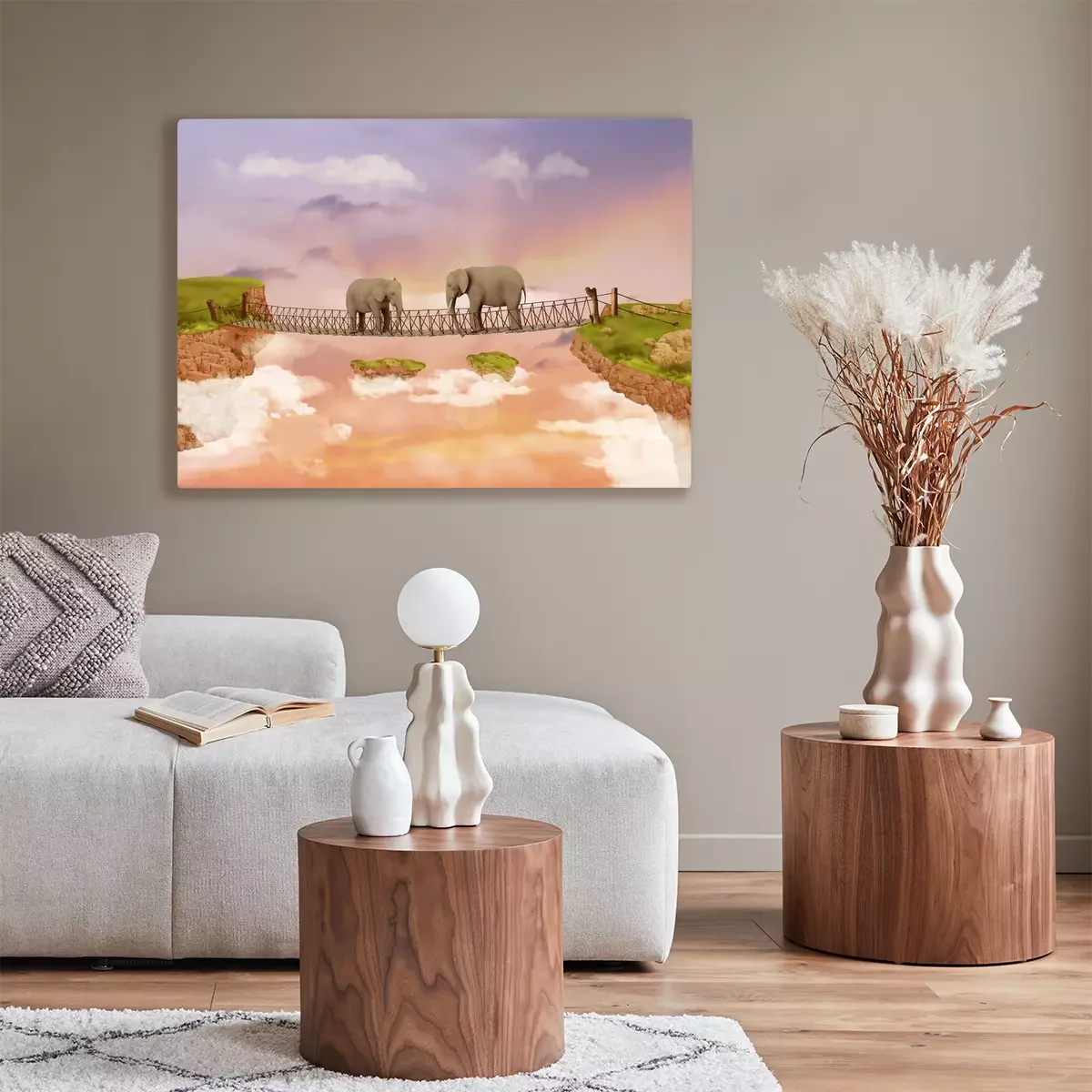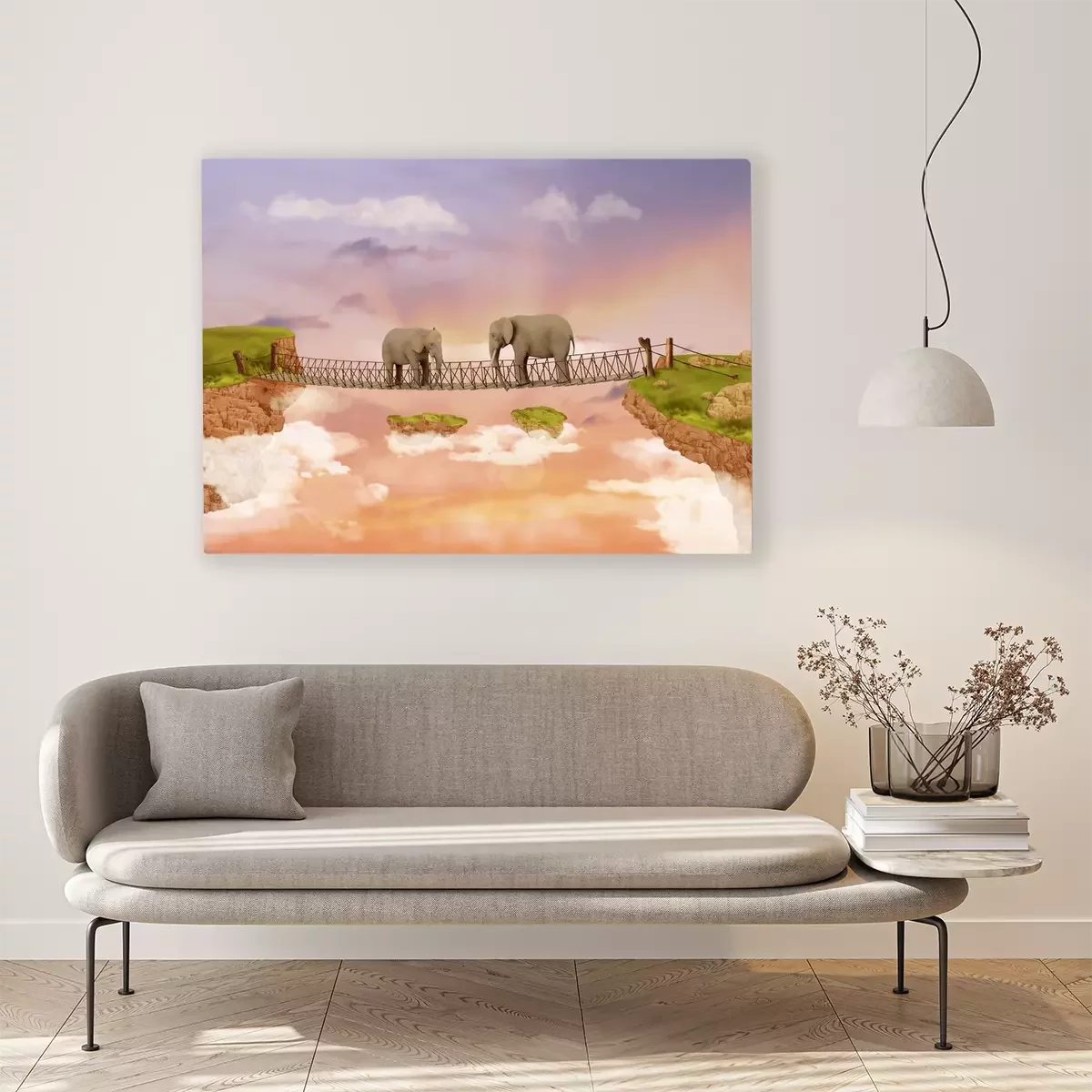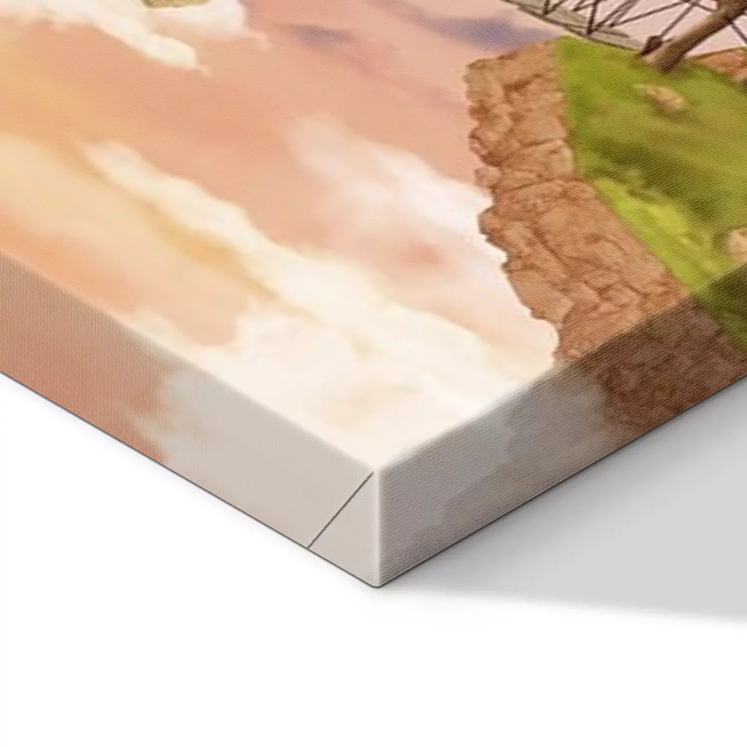 De print wordt aangebracht op hoogwaardig canvas dat op een schildersweefgetouw (spieraam) wordt gespannen. Omdat de print de zijranden bedekt, hoeft het ontwerp niet met een extra kader te worden omlijst. Wij raden ook composities aan die uit meerdere foto's bestaan en zo een coherente compositie vormen.