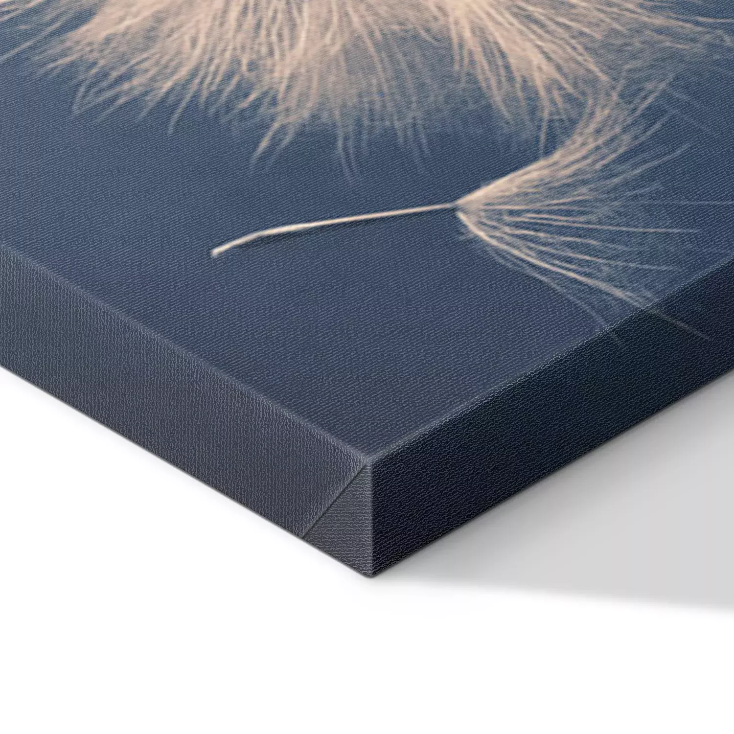 De print wordt aangebracht op hoogwaardig canvas dat op een schildersweefgetouw (spieraam) wordt gespannen. Omdat de print de zijranden bedekt, hoeft het ontwerp niet met een extra kader te worden omlijst. Wij raden ook composities aan die uit meerdere foto's bestaan en zo een coherente compositie vormen.