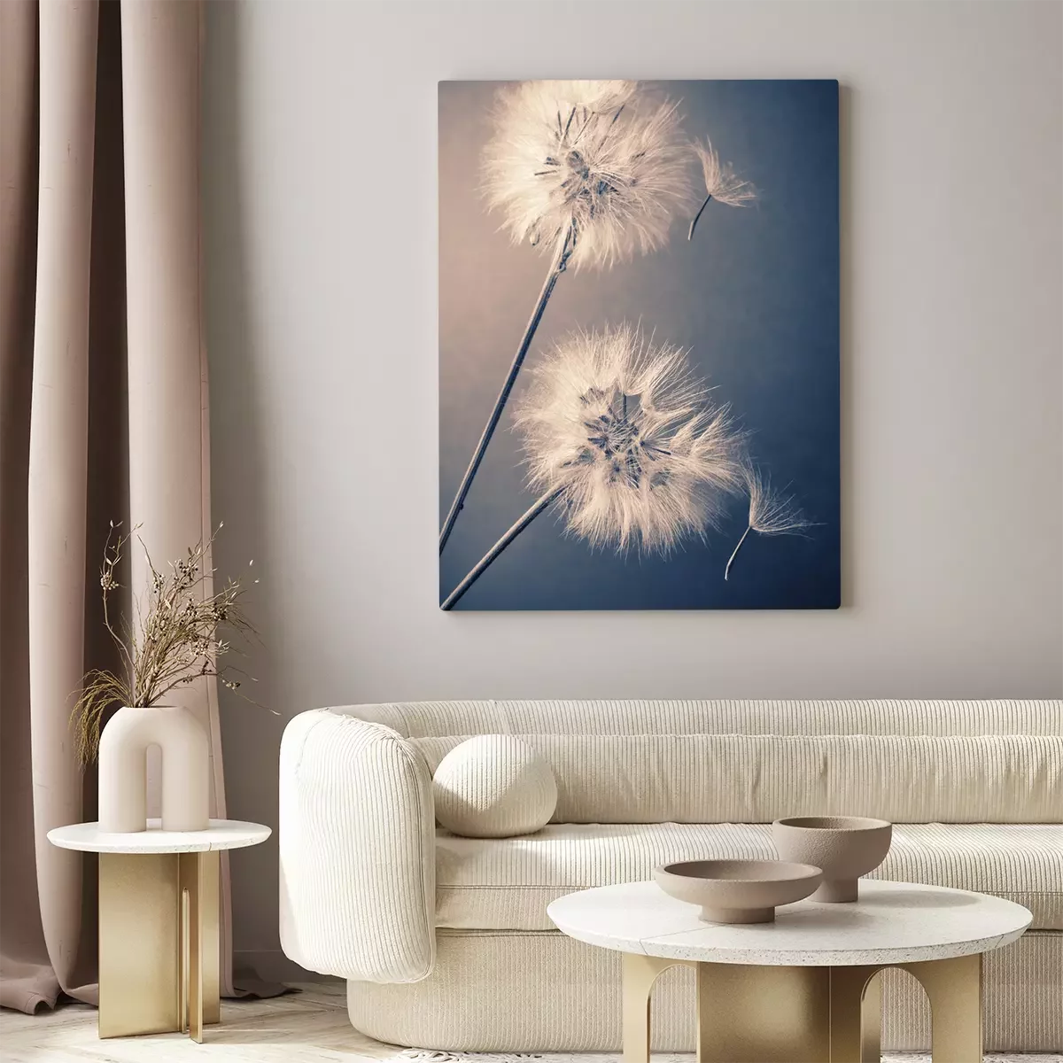 Canvas Twee pluizige paardebloemen