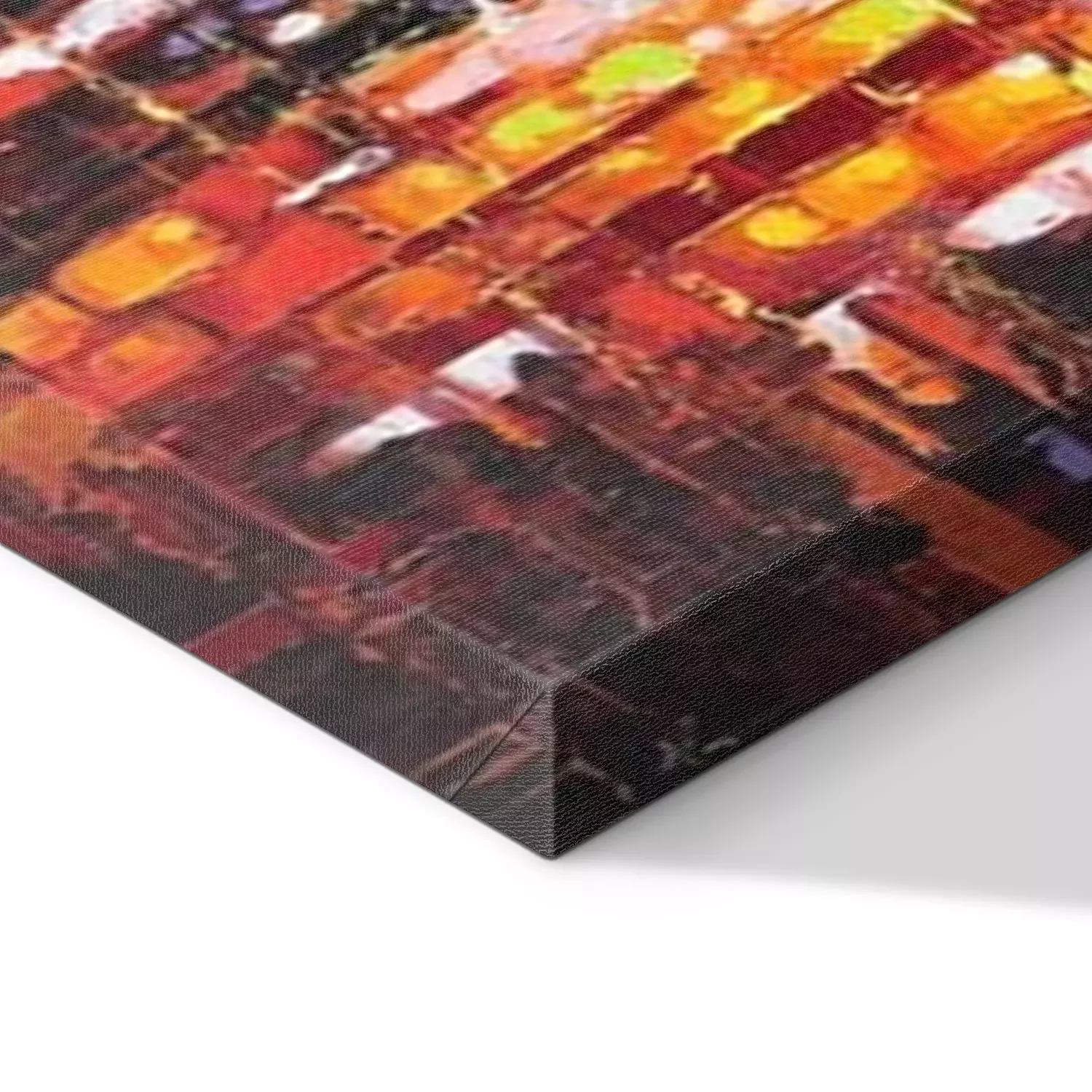 De print wordt aangebracht op hoogwaardig canvas dat op een schildersweefgetouw (spieraam) wordt gespannen. Omdat de print de zijranden bedekt, hoeft het ontwerp niet met een extra kader te worden omlijst. Wij raden ook composities aan die uit meerdere foto's bestaan en zo een coherente compositie vormen.