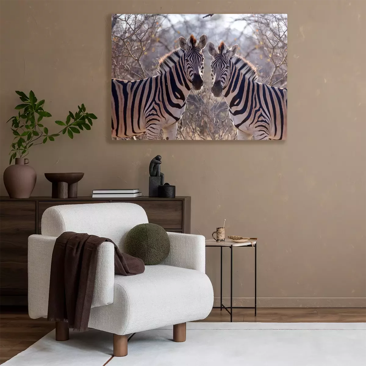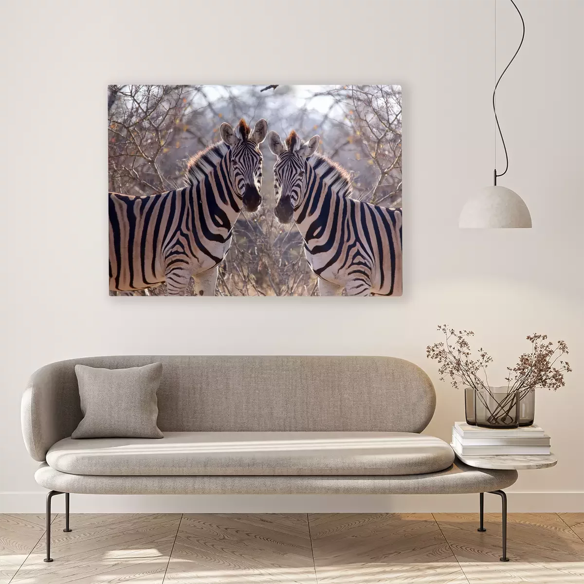De print wordt aangebracht op hoogwaardig canvas dat op een schildersweefgetouw (spieraam) wordt gespannen. Omdat de print de zijranden bedekt, hoeft het ontwerp niet met een extra kader te worden omlijst. Wij raden ook composities aan die uit meerdere foto's bestaan en zo een coherente compositie vormen.
