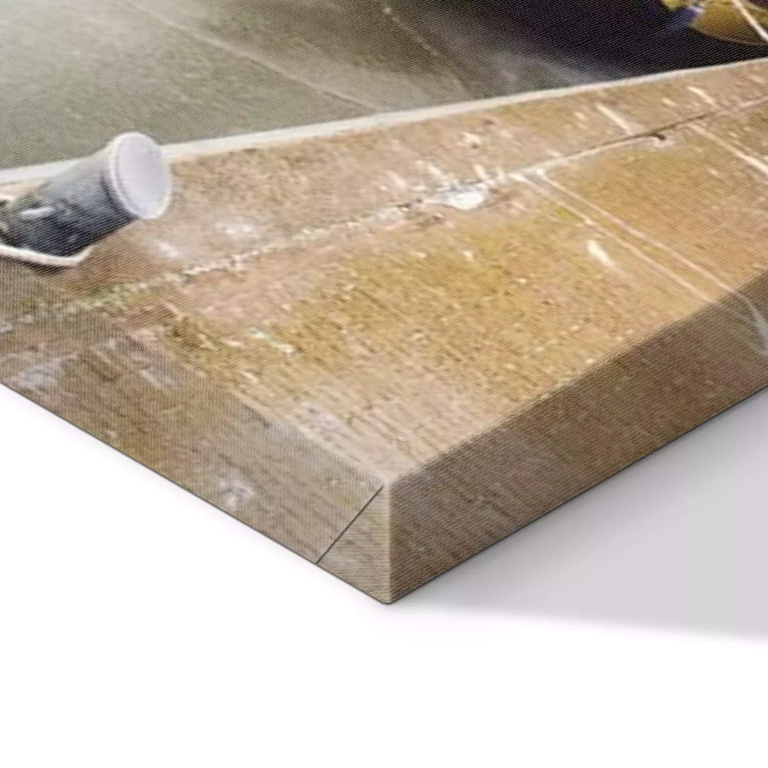 De print wordt aangebracht op hoogwaardig canvas dat op een schildersweefgetouw (spieraam) wordt gespannen. Omdat de print de zijranden bedekt, hoeft het ontwerp niet met een extra kader te worden omlijst. Wij raden ook composities aan die uit meerdere foto's bestaan en zo een coherente compositie vormen.