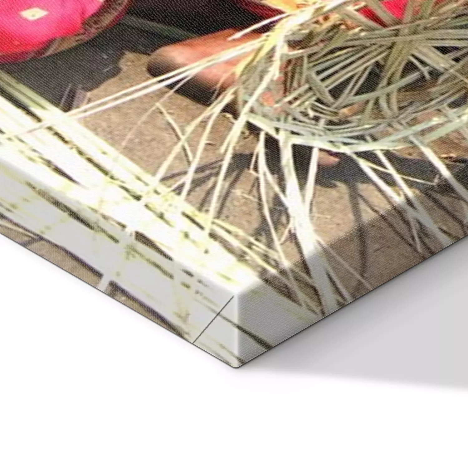 De print wordt aangebracht op hoogwaardig canvas dat op een schildersweefgetouw (spieraam) wordt gespannen. Omdat de print de zijranden bedekt, hoeft het ontwerp niet met een extra kader te worden omlijst. Wij raden ook composities aan die uit meerdere foto's bestaan en zo een coherente compositie vormen.