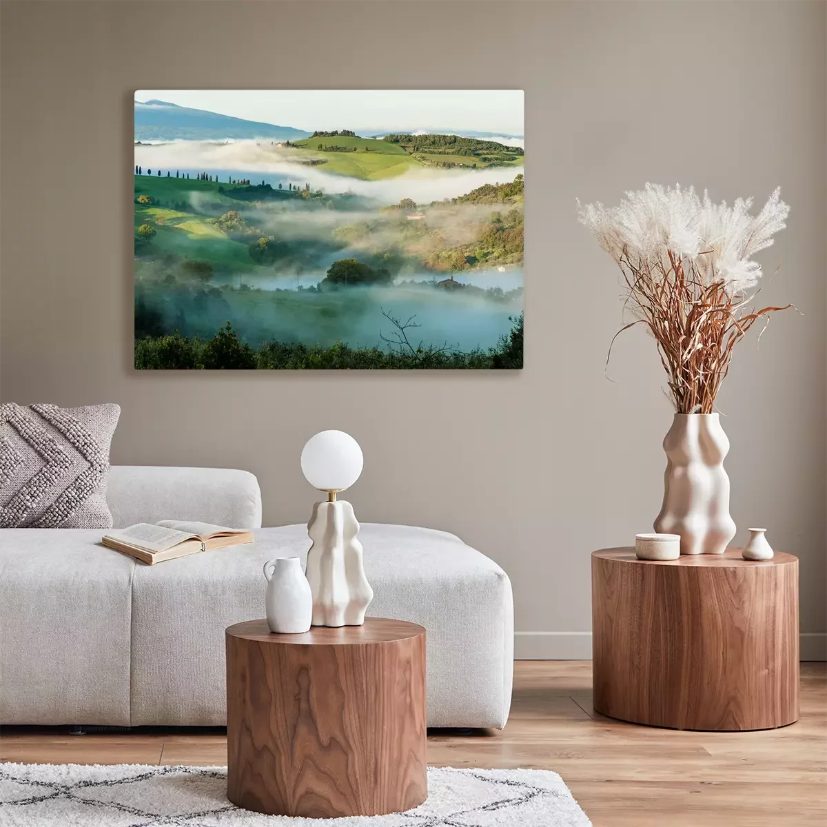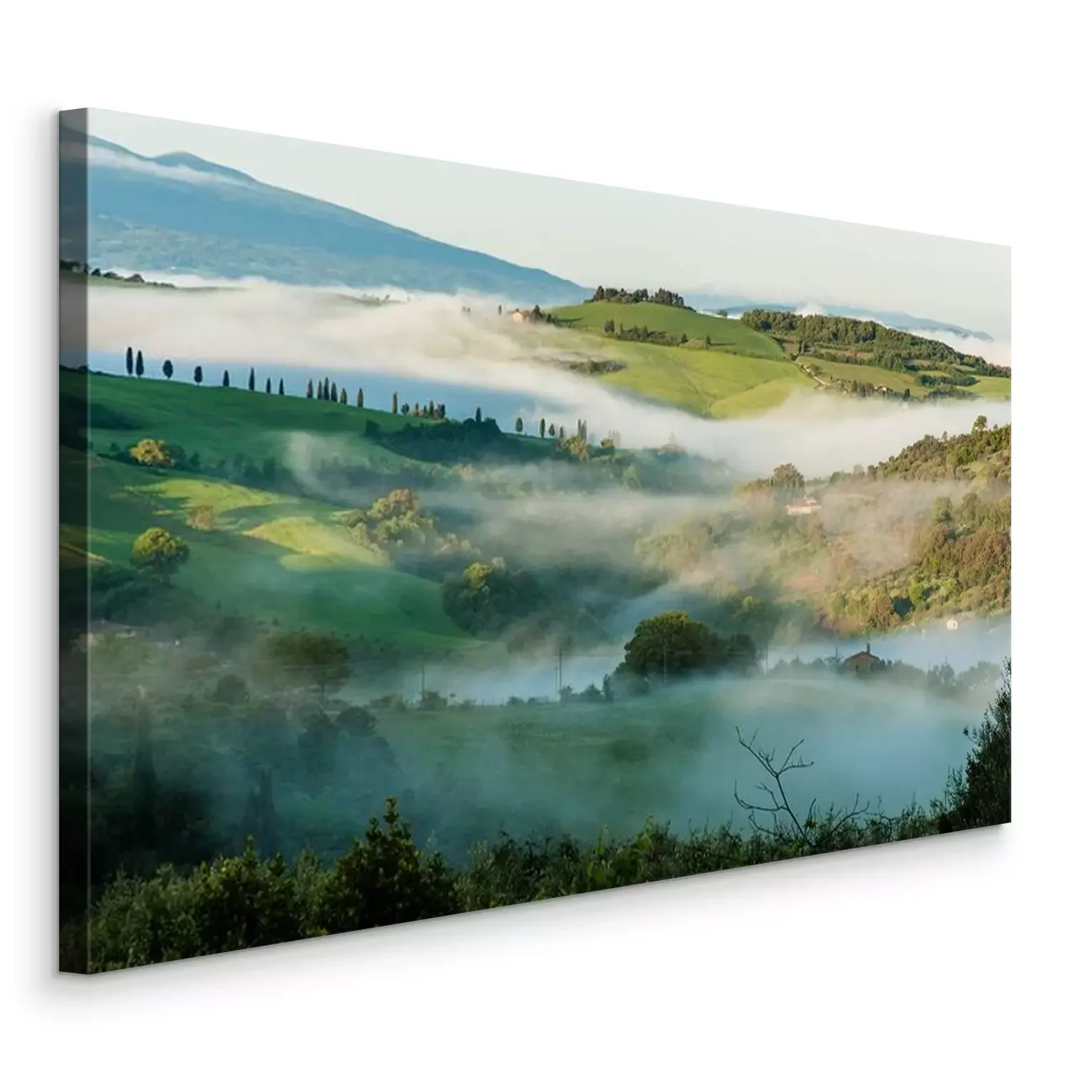 Canvas: Typisch Toscaanse landschap in de ochtend mist