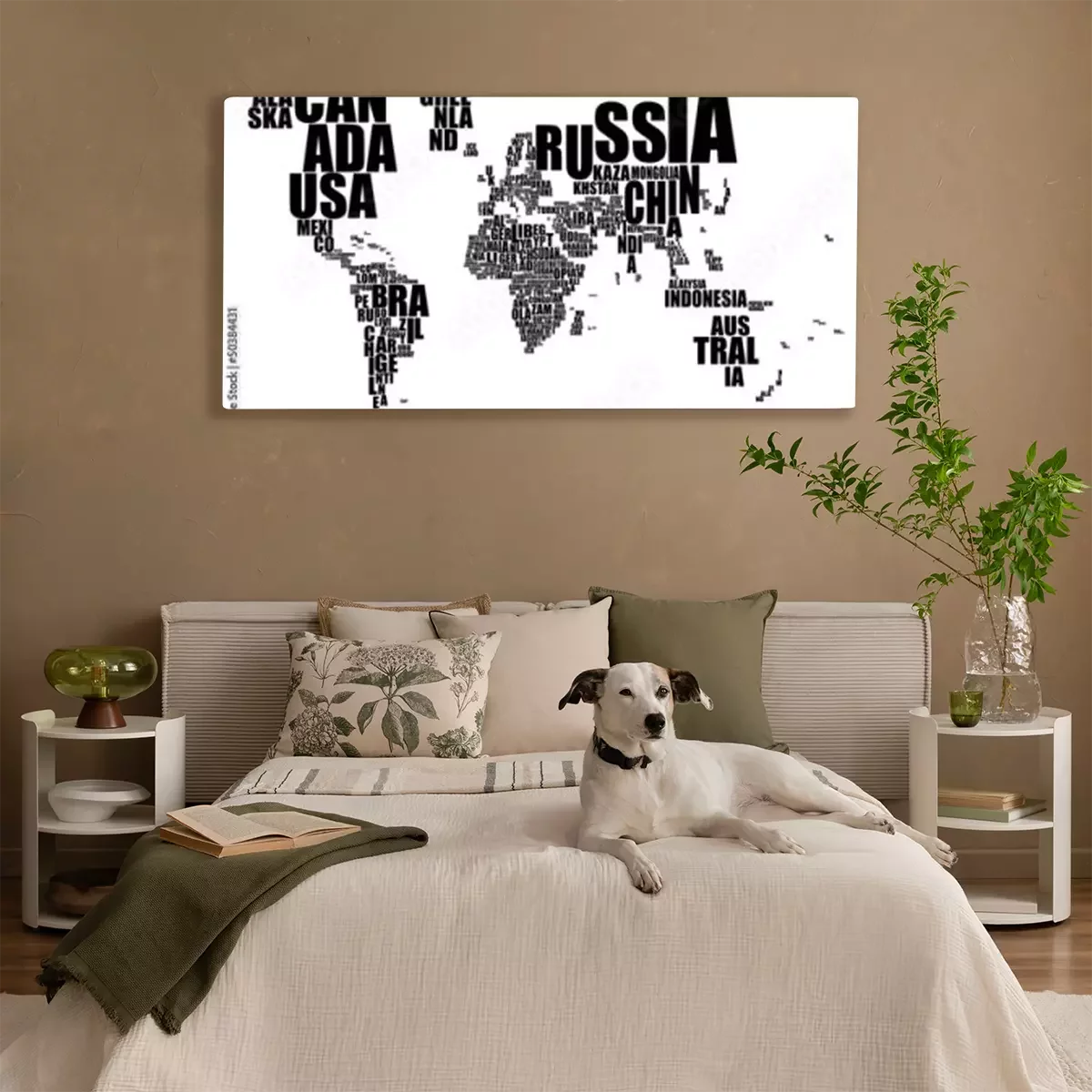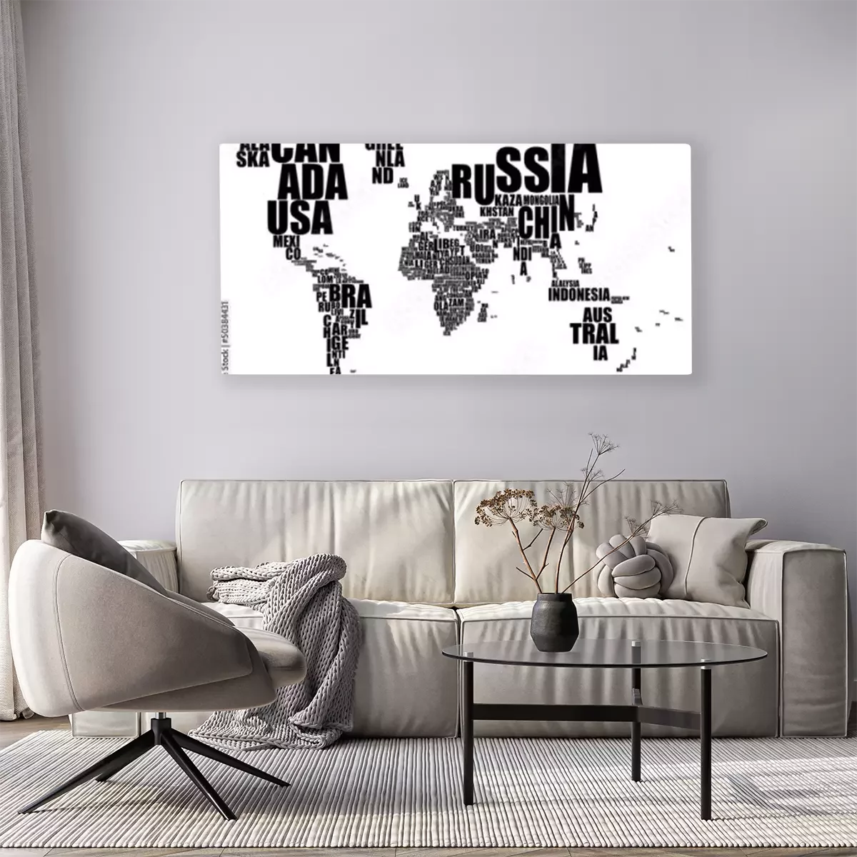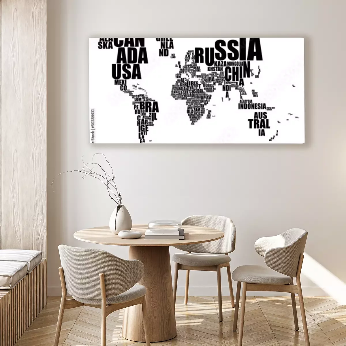 Canvas: Typografische zwarte wereldkaart