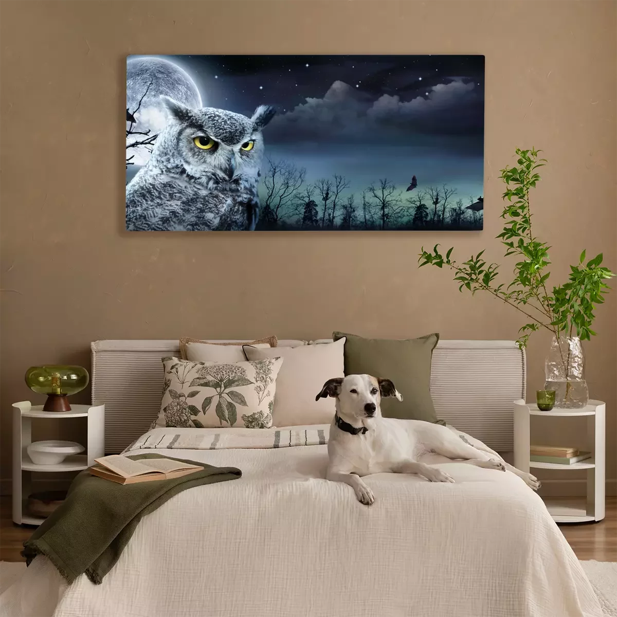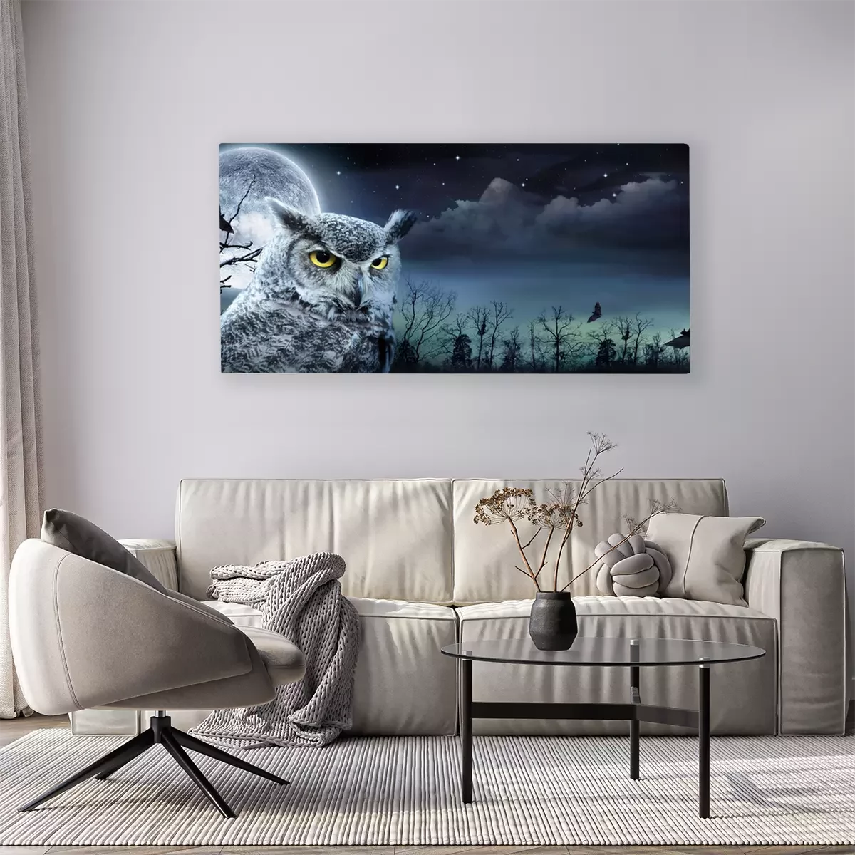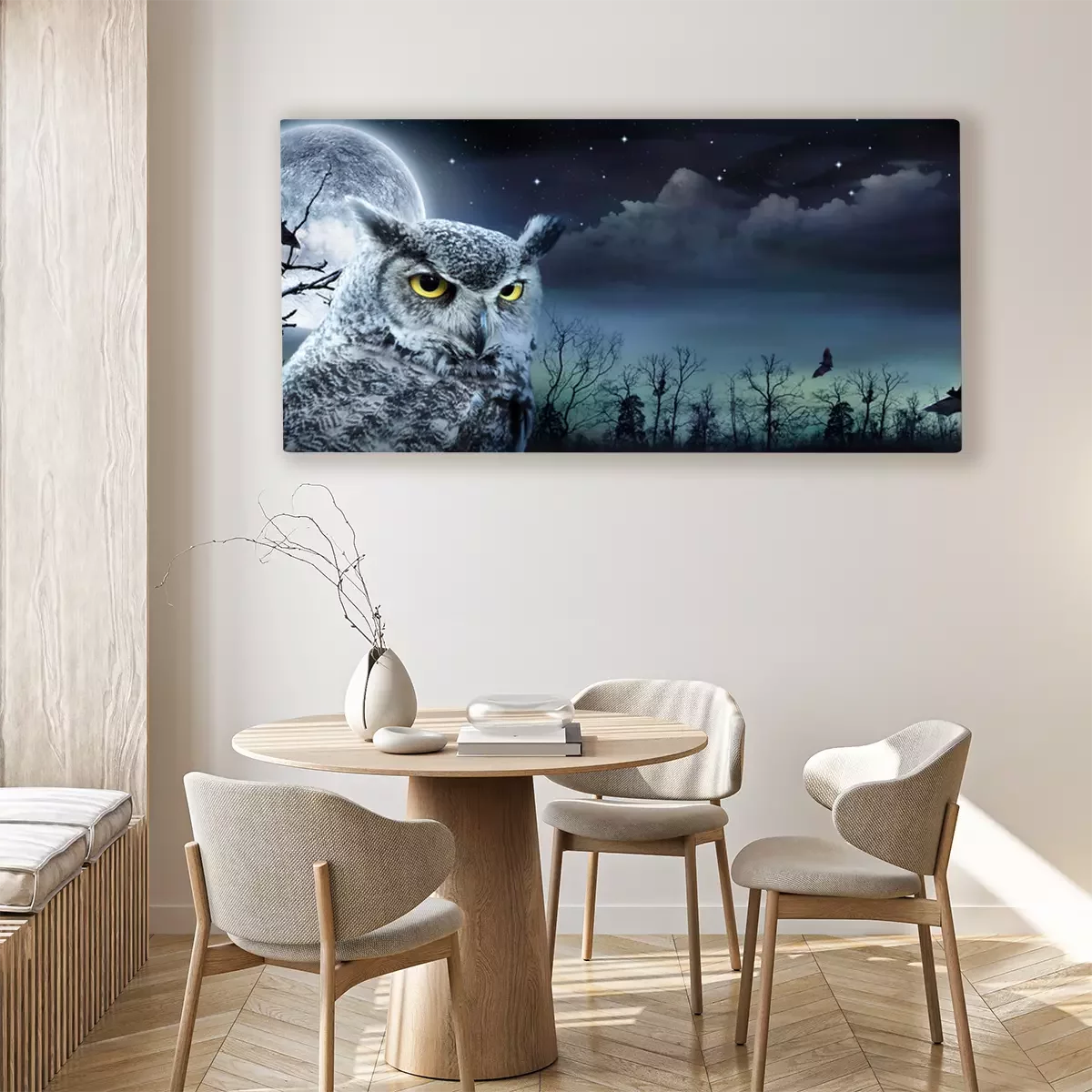 Canvas Uil en enge maan