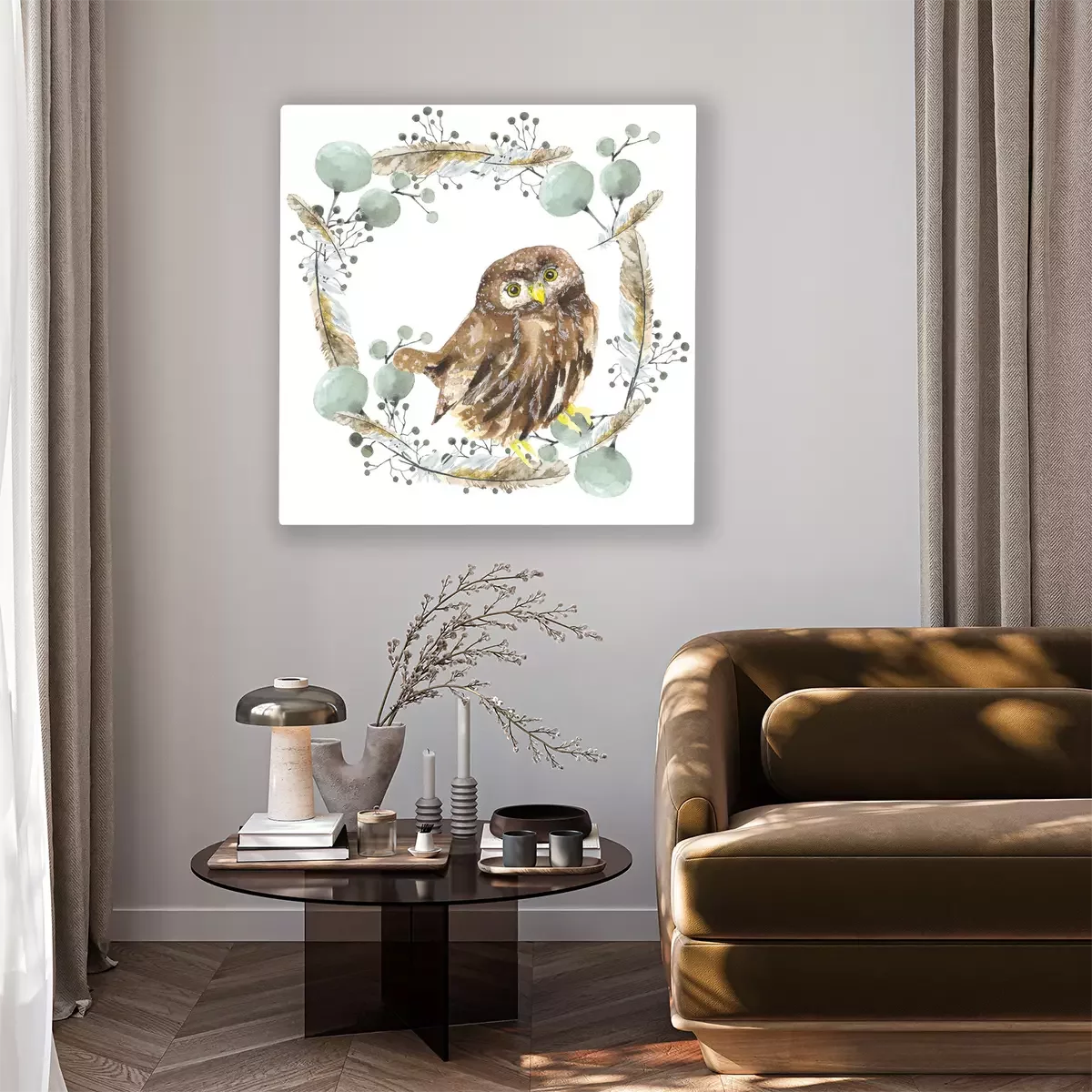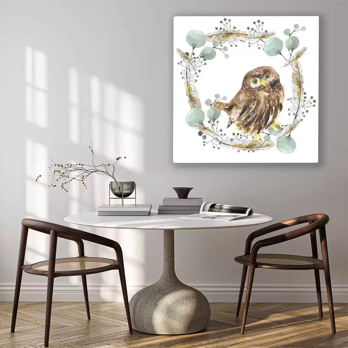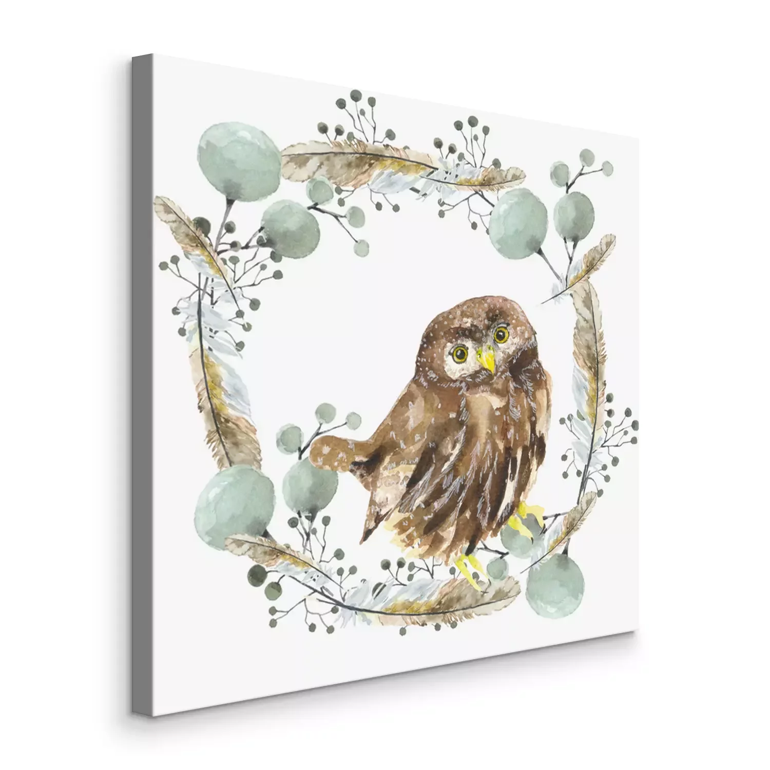 Canvas Uil in een krans