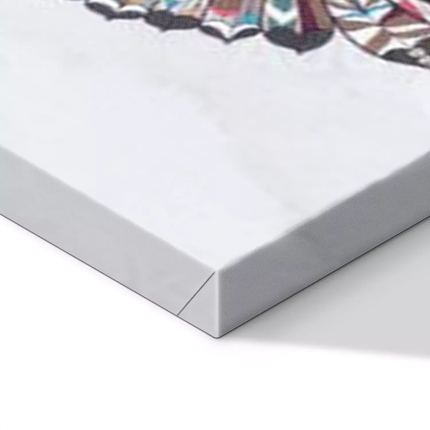 De print wordt aangebracht op hoogwaardig canvas dat op een schildersweefgetouw (spieraam) wordt gespannen. Omdat de print de zijranden bedekt, hoeft het ontwerp niet met een extra kader te worden omlijst. Wij raden ook composities aan die uit meerdere foto's bestaan en zo een coherente compositie vormen.