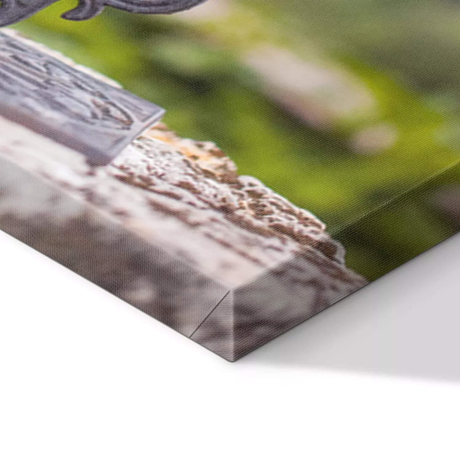 De print wordt aangebracht op hoogwaardig canvas dat op een schildersweefgetouw (spieraam) wordt gespannen. Omdat de print de zijranden bedekt, hoeft het ontwerp niet met een extra kader te worden omlijst. Wij raden ook composities aan die uit meerdere foto's bestaan en zo een coherente compositie vormen.