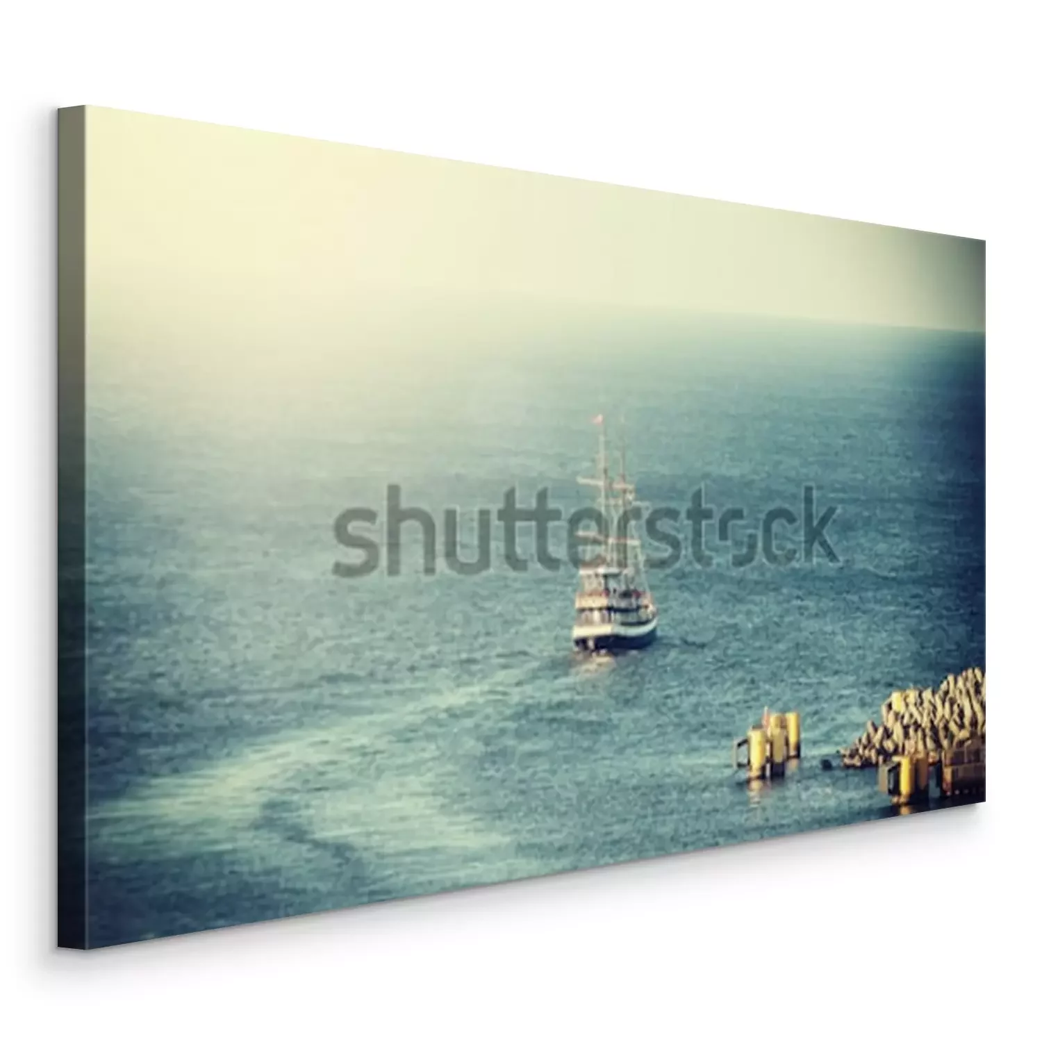 Canvas: Uitstekend beeld van oud varend schip de haven verlaten.