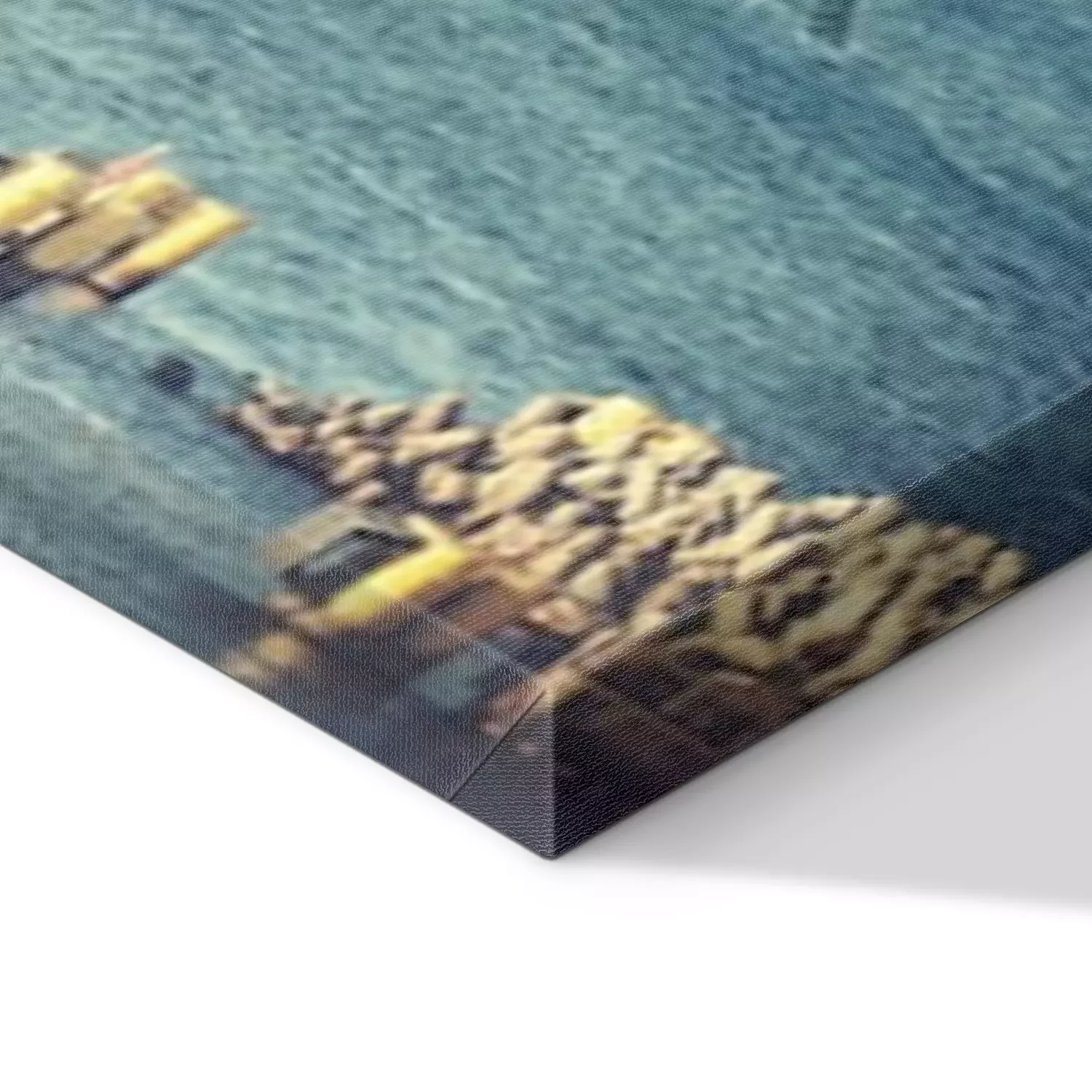 De print wordt aangebracht op hoogwaardig canvas dat op een schildersweefgetouw (spieraam) wordt gespannen. Omdat de print de zijranden bedekt, hoeft het ontwerp niet met een extra kader te worden omlijst. Wij raden ook composities aan die uit meerdere foto's bestaan en zo een coherente compositie vormen.
