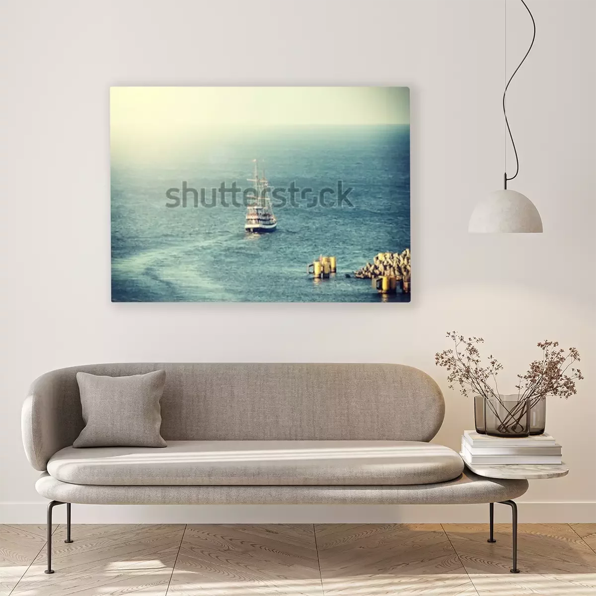 Canvas Uitstekend beeld van oud varend schip de haven verlaten.