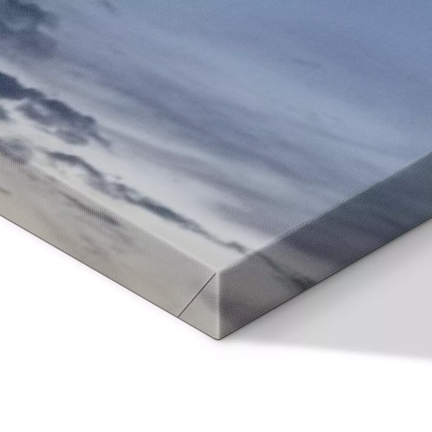 De print wordt aangebracht op hoogwaardig canvas dat op een schildersweefgetouw (spieraam) wordt gespannen. Omdat de print de zijranden bedekt, hoeft het ontwerp niet met een extra kader te worden omlijst. Wij raden ook composities aan die uit meerdere foto's bestaan en zo een coherente compositie vormen.