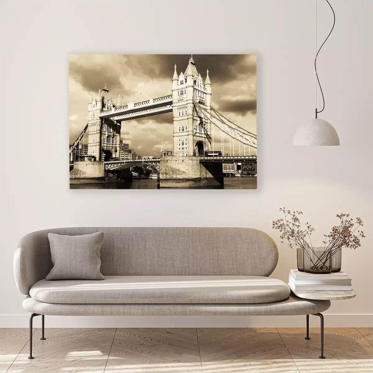 Canvas: Uitstekende weergave van Tower Bridge, London. Sepia afgezwakt.