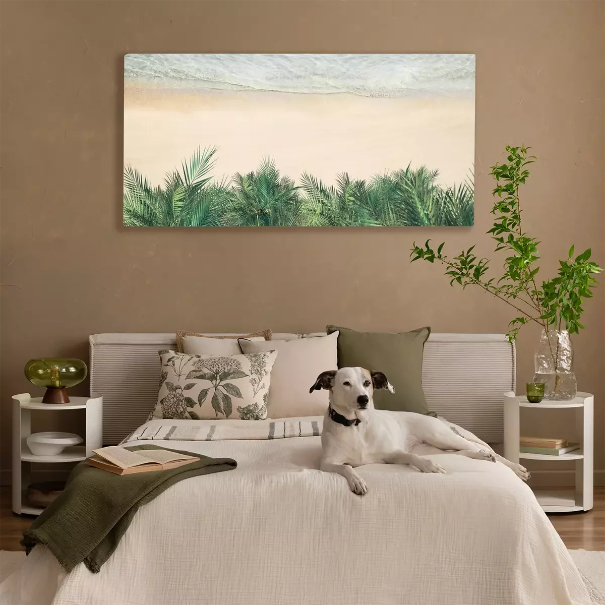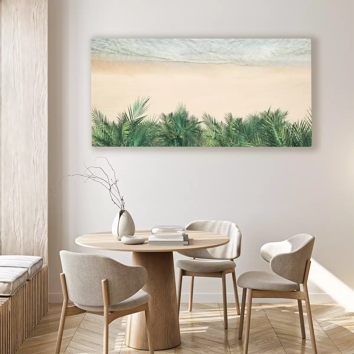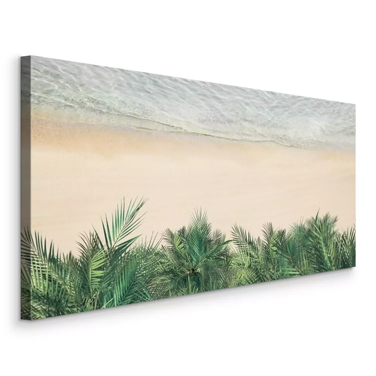 Canvas: Uitzicht in vogelvlucht op palmbomen aan de kust