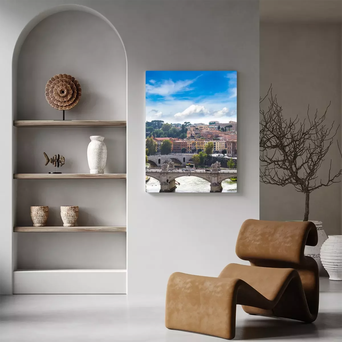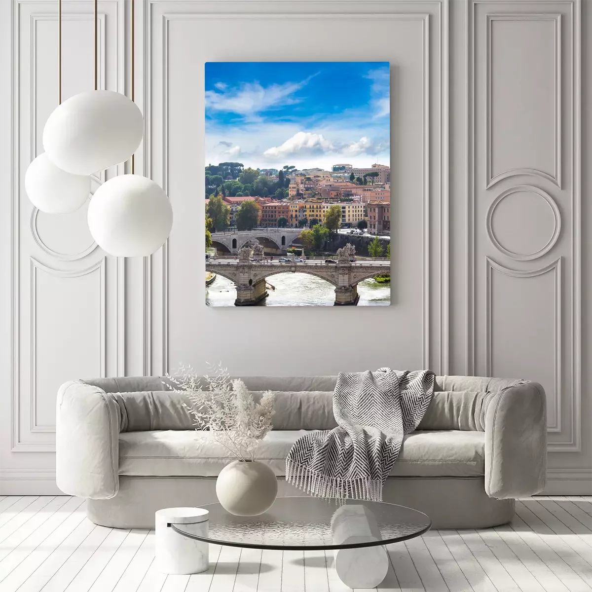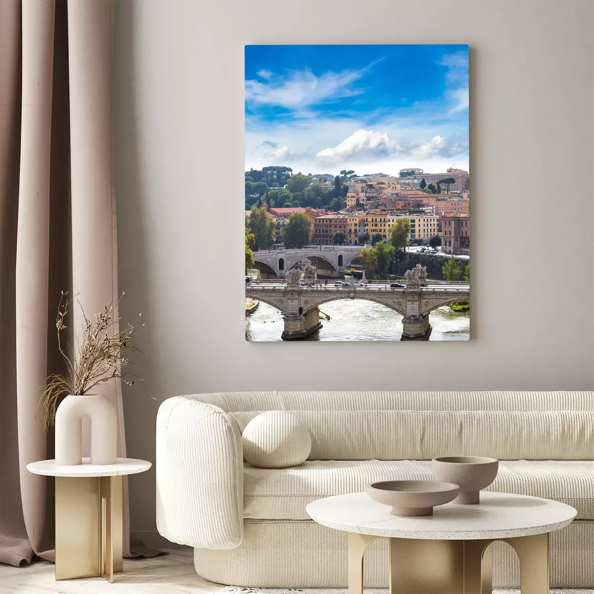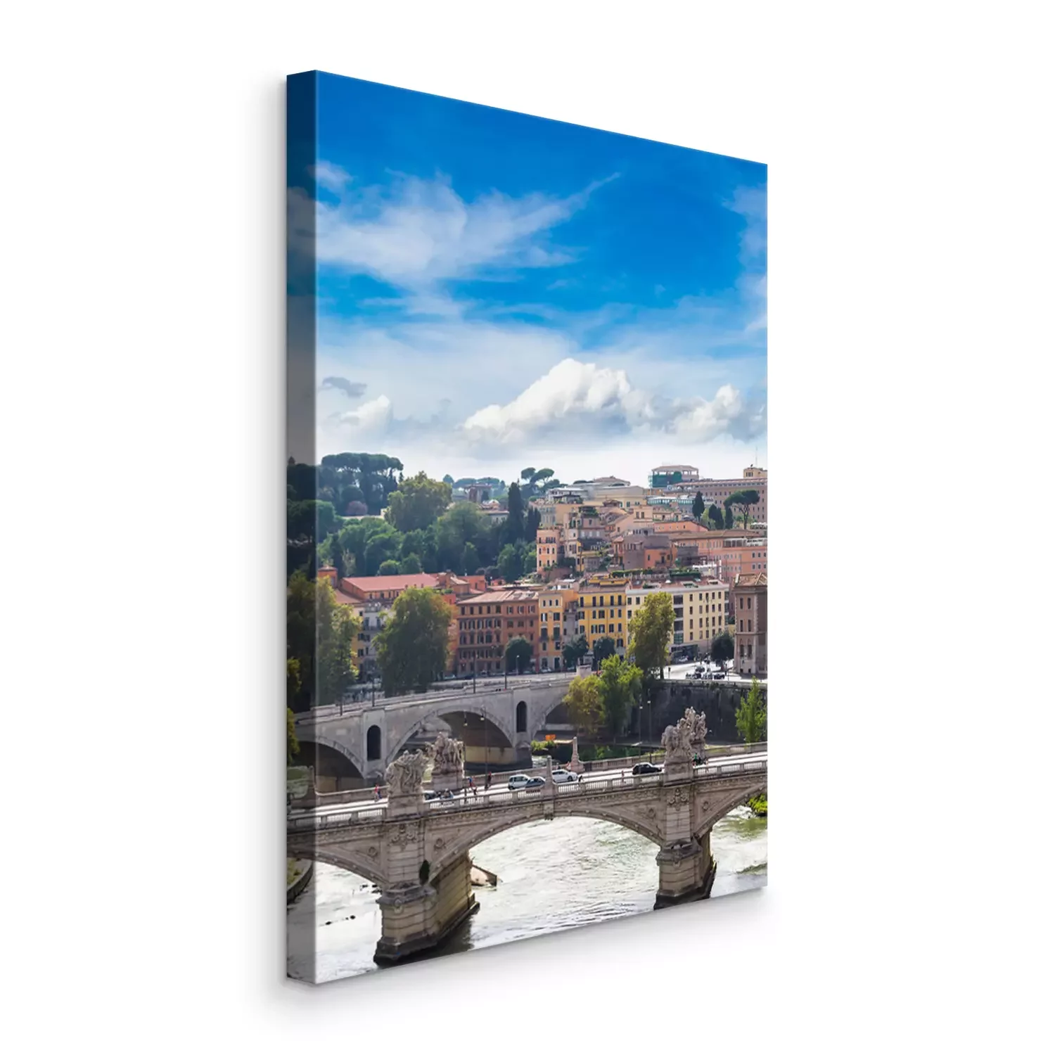 Canvas: Uitzicht op de brug en de Tiber in Rome