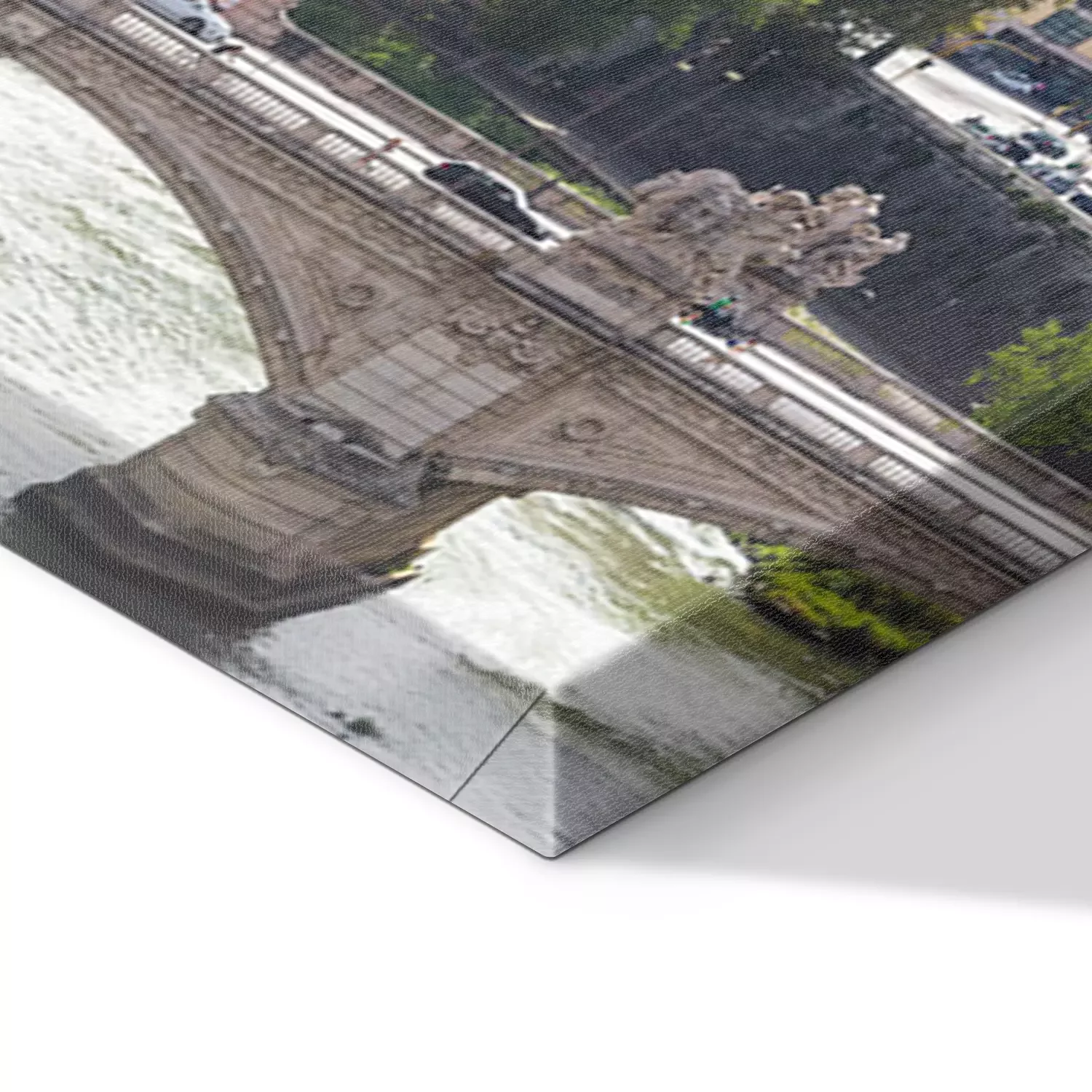 De print wordt aangebracht op hoogwaardig canvas dat op een schildersweefgetouw (spieraam) wordt gespannen. Omdat de print de zijranden bedekt, hoeft het ontwerp niet met een extra kader te worden omlijst. Wij raden ook composities aan die uit meerdere foto's bestaan en zo een coherente compositie vormen.