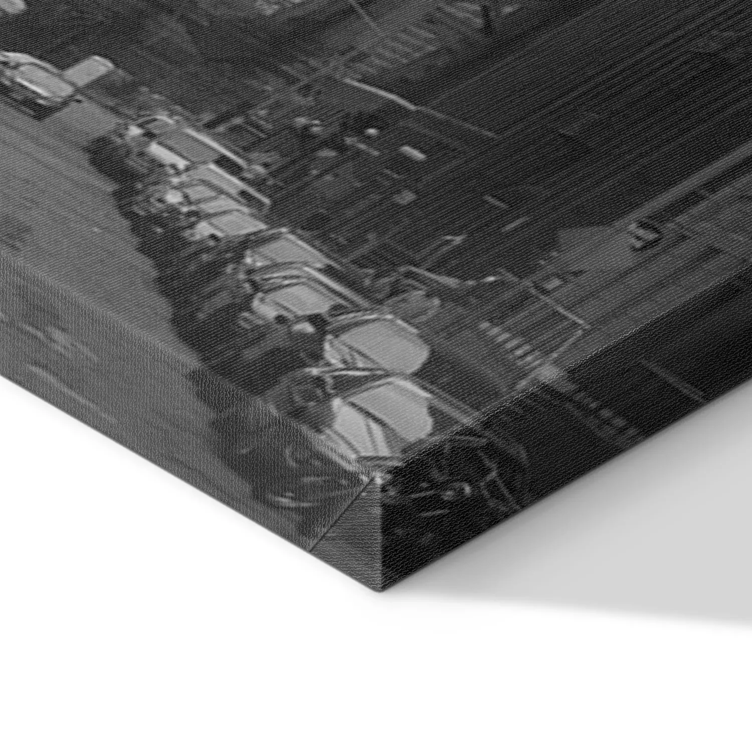 De print wordt aangebracht op hoogwaardig canvas dat op een schildersweefgetouw (spieraam) wordt gespannen. Omdat de print de zijranden bedekt, hoeft het ontwerp niet met een extra kader te worden omlijst. Wij raden ook composities aan die uit meerdere foto's bestaan en zo een coherente compositie vormen.