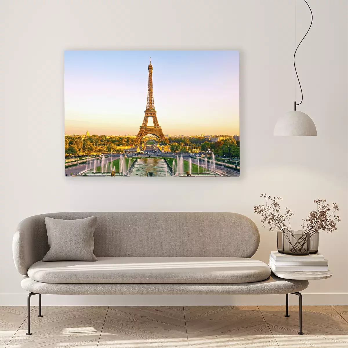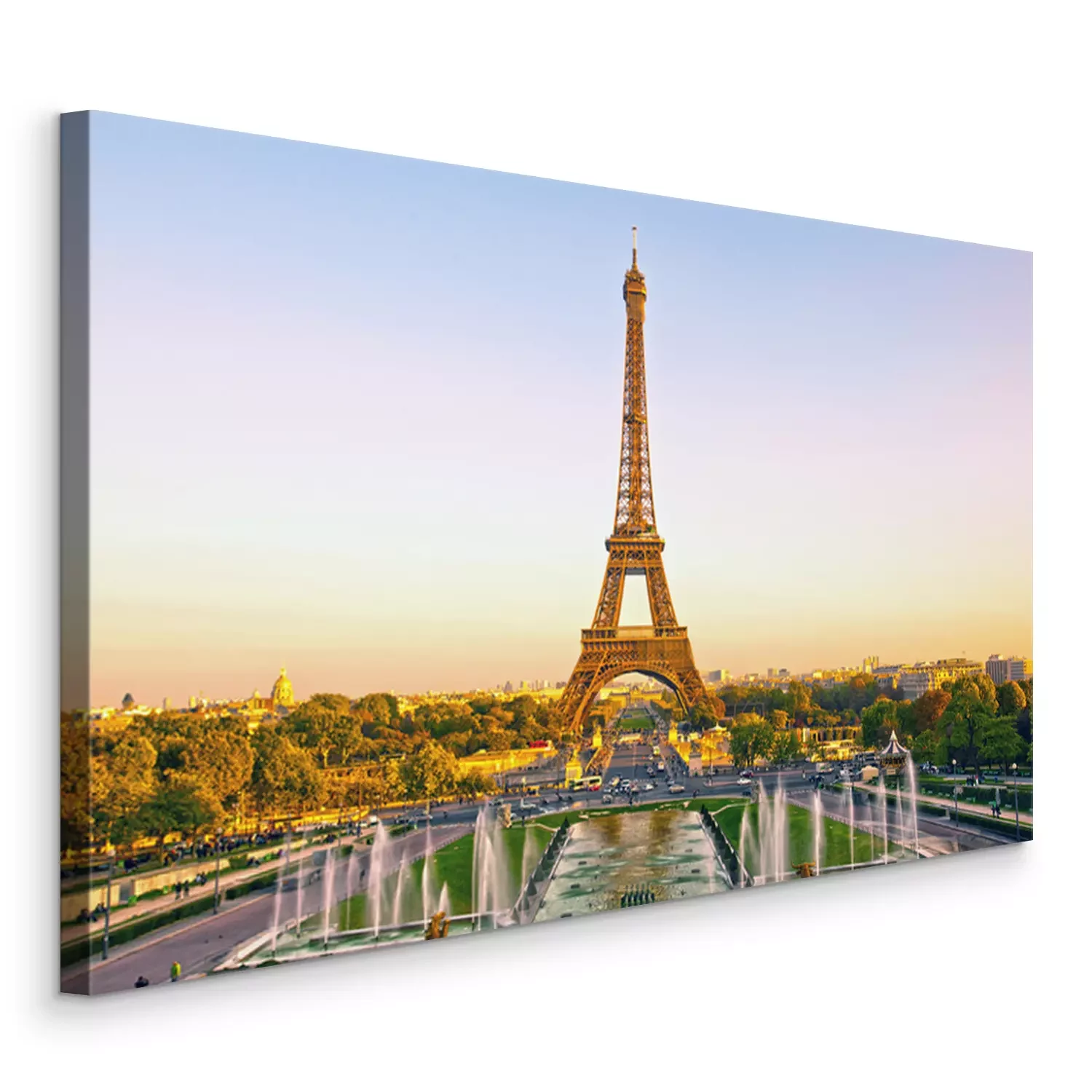 Canvas: Uitzicht op de Eiffeltoren bij zonsondergang in Parijs, Frankrijk