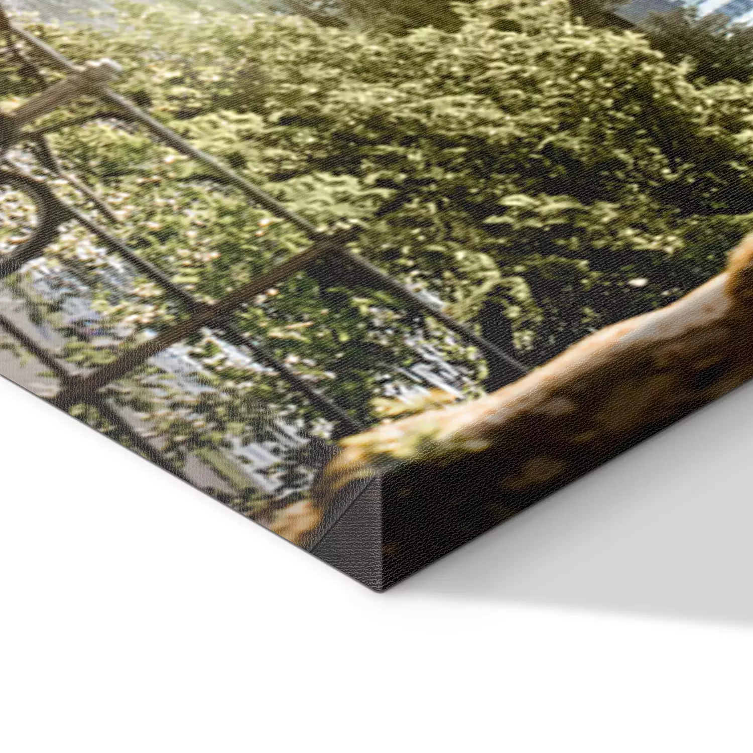 De print wordt aangebracht op hoogwaardig canvas dat op een schildersweefgetouw (spieraam) wordt gespannen. Omdat de print de zijranden bedekt, hoeft het ontwerp niet met een extra kader te worden omlijst. Wij raden ook composities aan die uit meerdere foto's bestaan en zo een coherente compositie vormen.