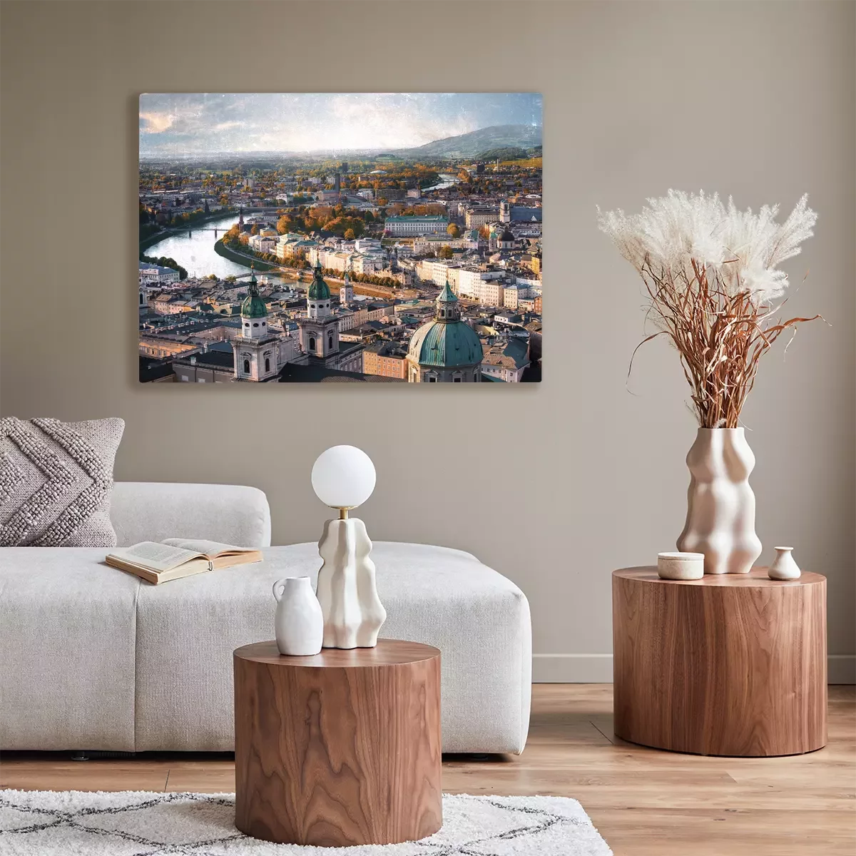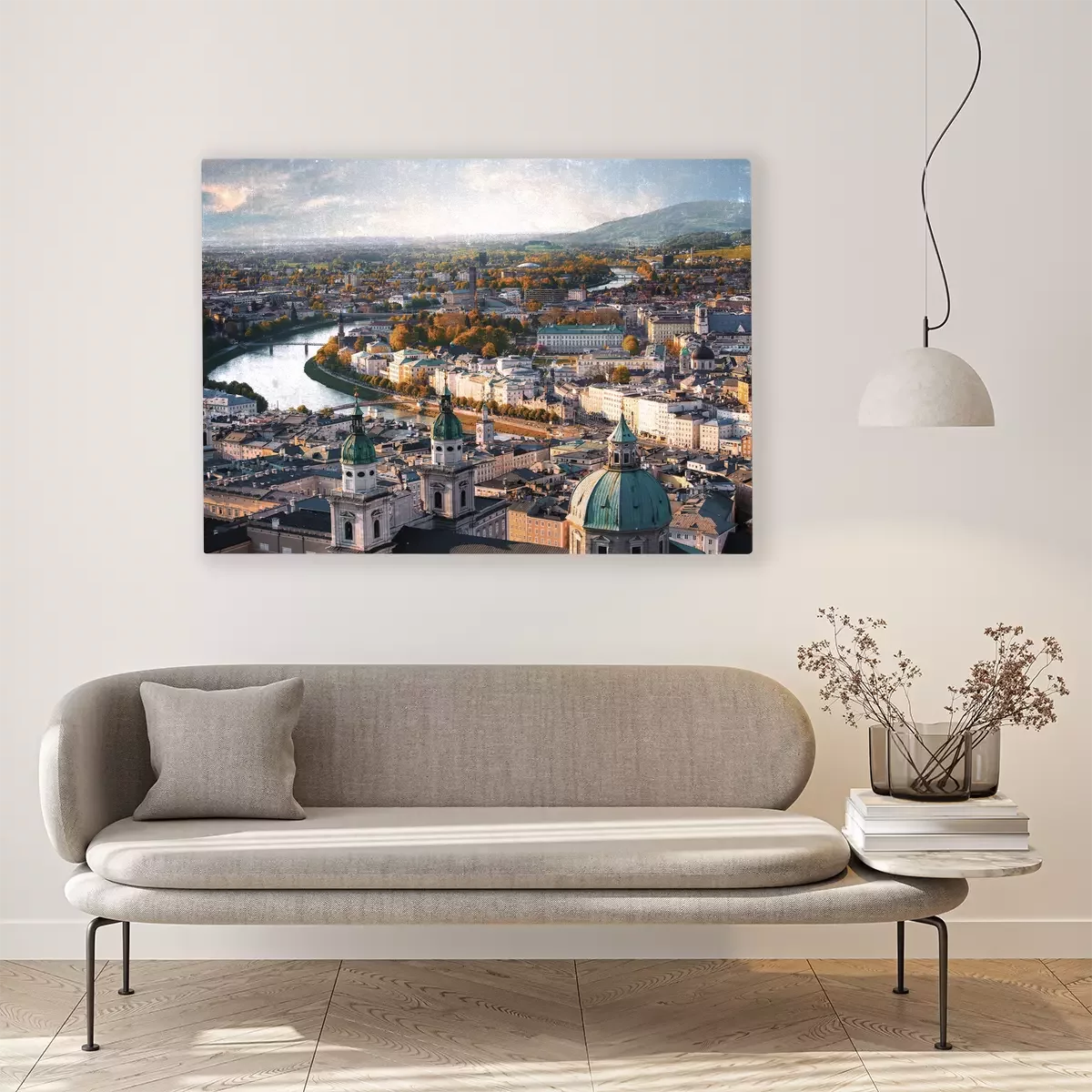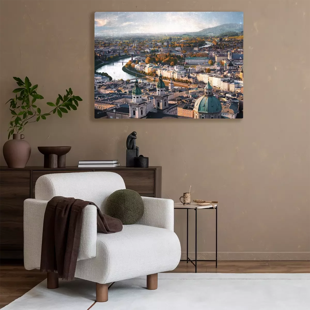 Uitzicht op de oude binnenstad van salzburg en de rivier