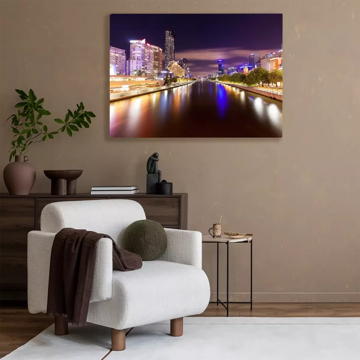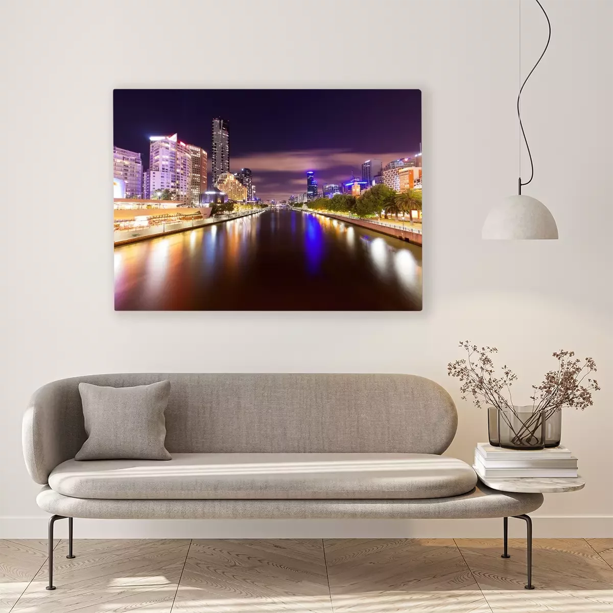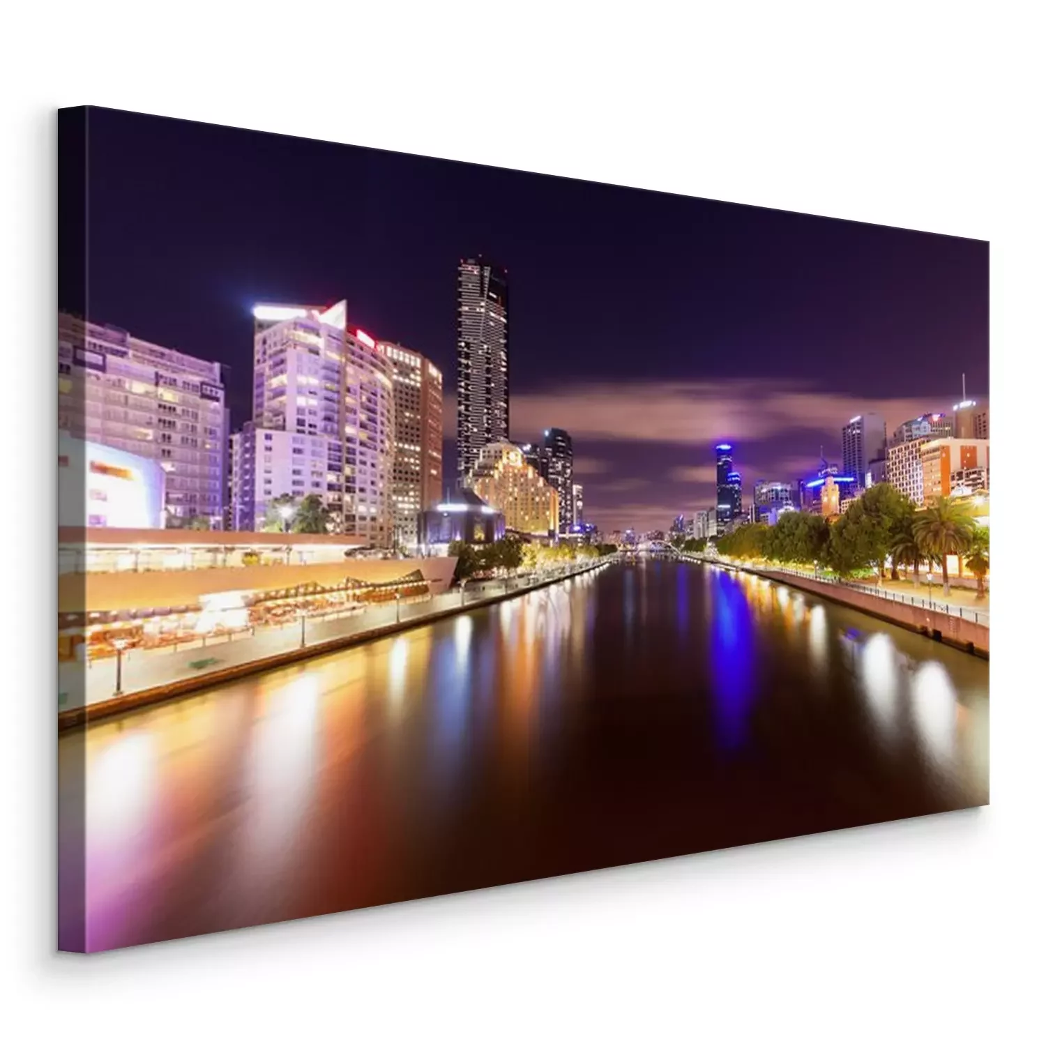 Canvas: Uitzicht op de rivier Yarra in Melbourne in de nacht