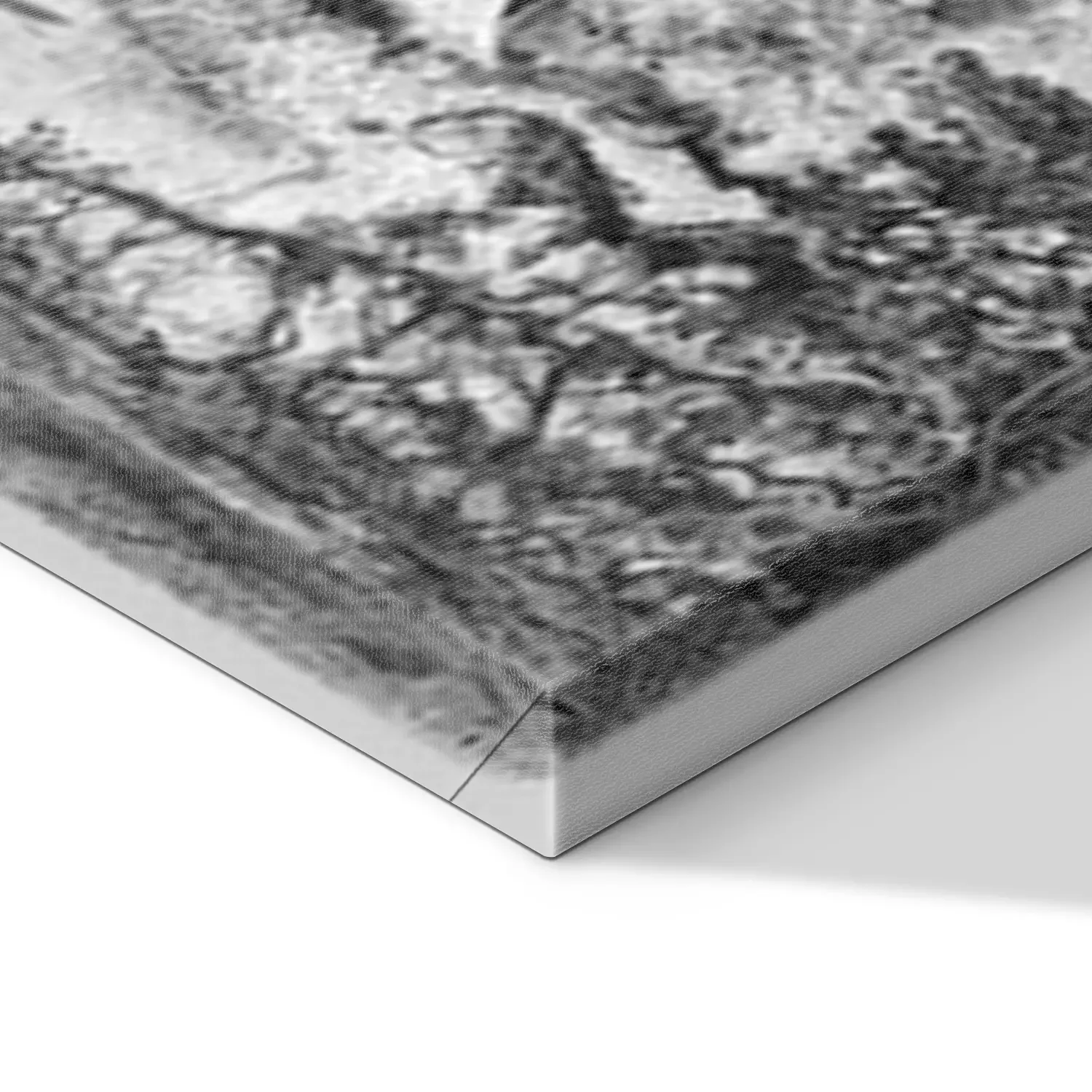 De print wordt aangebracht op hoogwaardig canvas dat op een schildersweefgetouw (spieraam) wordt gespannen. Omdat de print de zijranden bedekt, hoeft het ontwerp niet met een extra kader te worden omlijst. Wij raden ook composities aan die uit meerdere foto's bestaan en zo een coherente compositie vormen.