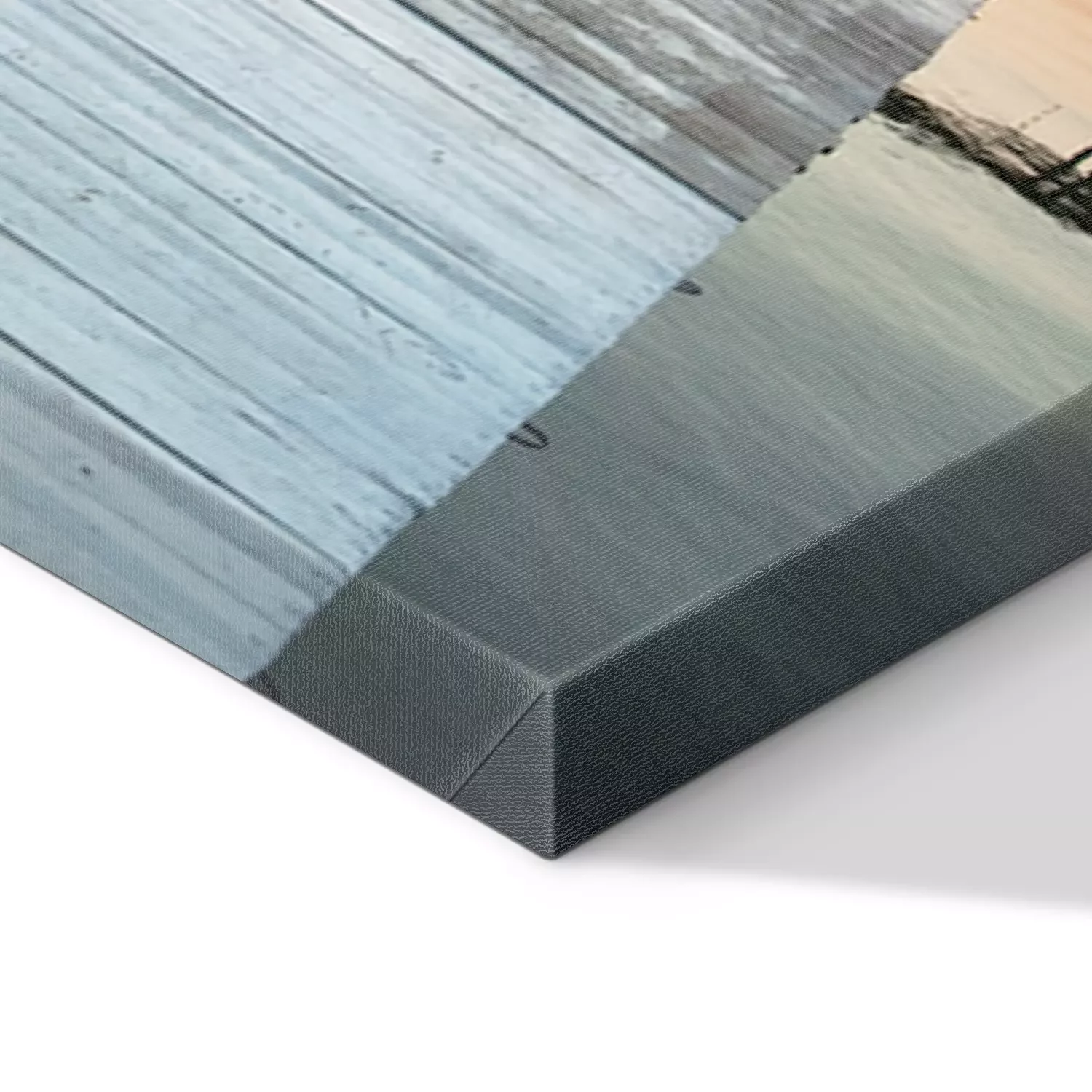 De print wordt aangebracht op hoogwaardig canvas dat op een schildersweefgetouw (spieraam) wordt gespannen. Omdat de print de zijranden bedekt, hoeft het ontwerp niet met een extra kader te worden omlijst. Wij raden ook composities aan die uit meerdere foto's bestaan en zo een coherente compositie vormen.