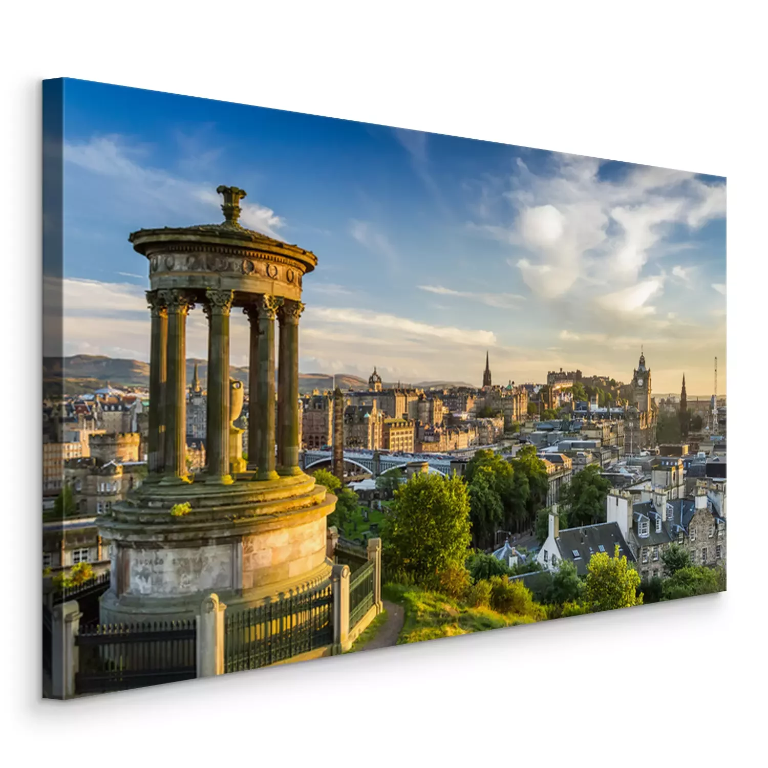 Canvas Uitzicht op het kasteel van Calton Hill bij zonsondergang