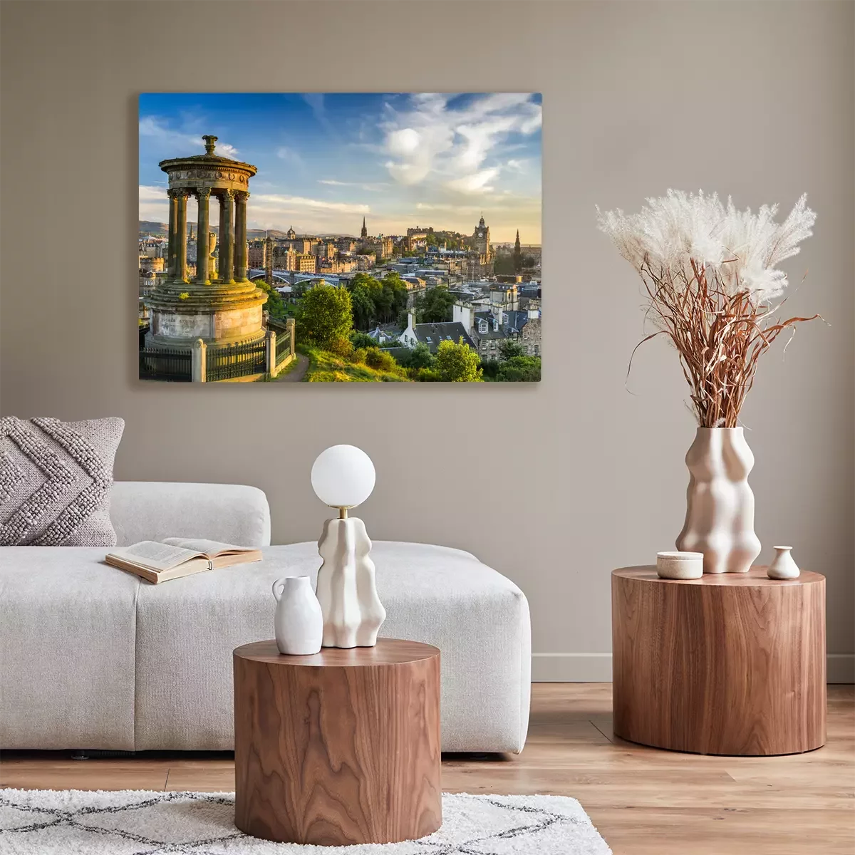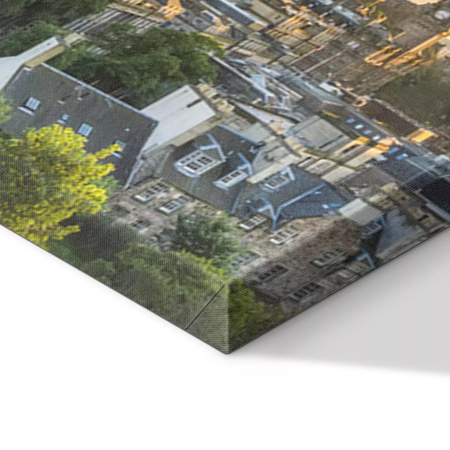 De print wordt aangebracht op hoogwaardig canvas dat op een schildersweefgetouw (spieraam) wordt gespannen. Omdat de print de zijranden bedekt, hoeft het ontwerp niet met een extra kader te worden omlijst. Wij raden ook composities aan die uit meerdere foto's bestaan en zo een coherente compositie vormen.